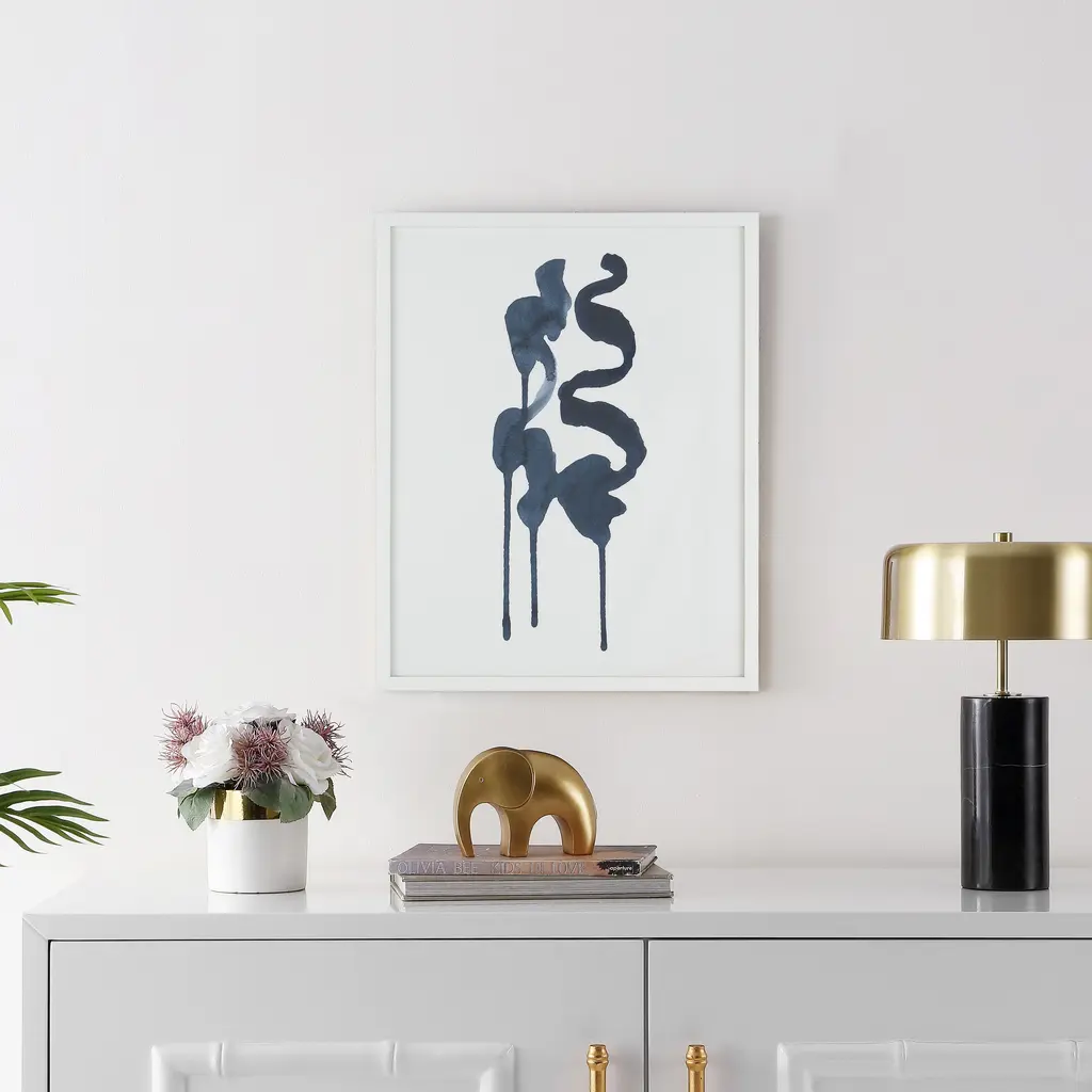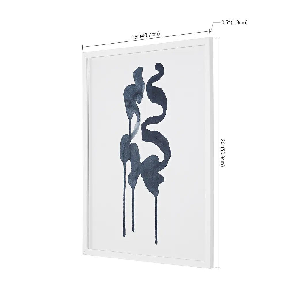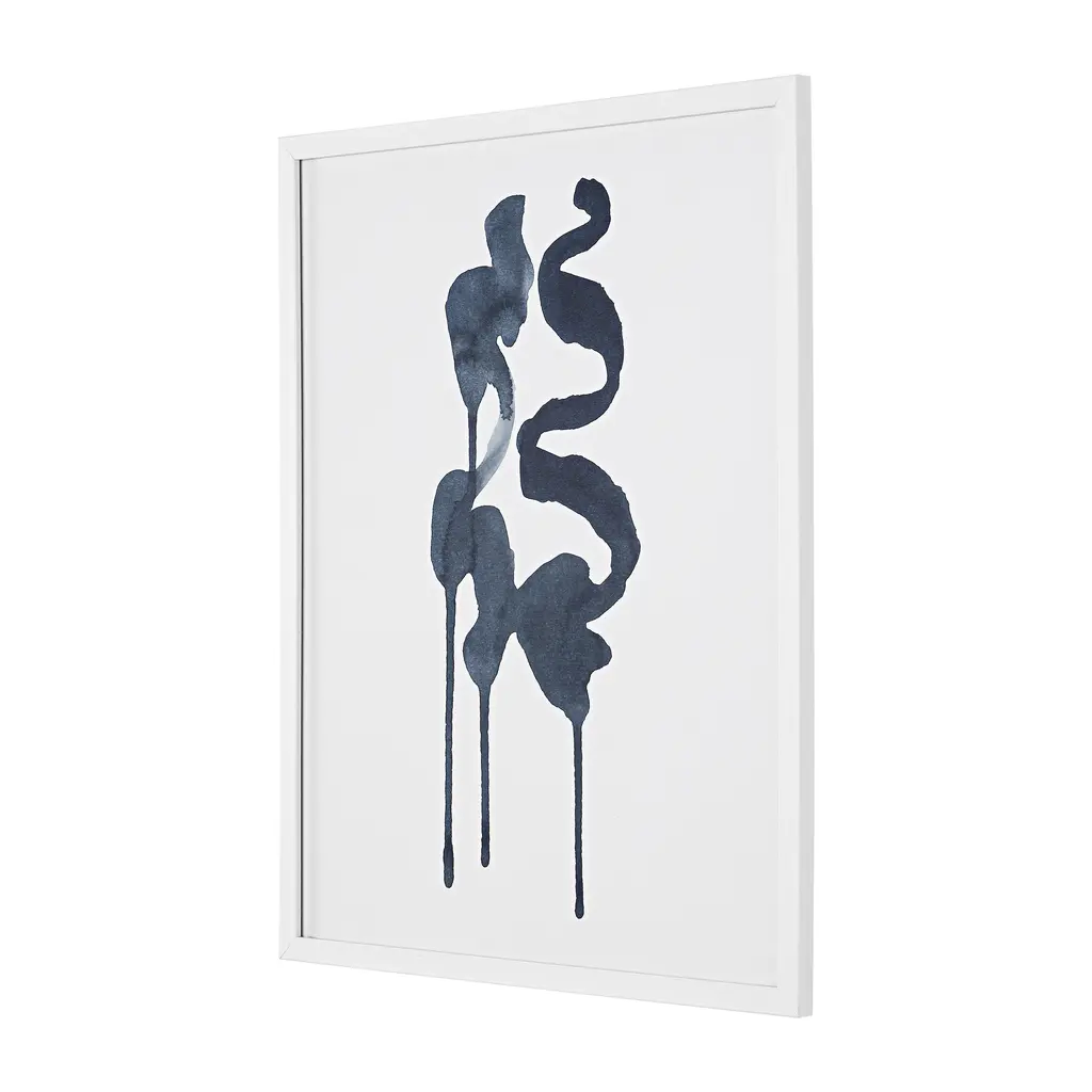 Give a sleek and tranquil update to your home with our, "Ink Song" framed wall art. The expressive brushstrokes of our wall art drip and flow naturally to attain a soothing and graceful presence. Adorned in a soft tonal wash in denim blue ink, the abstract artwork effortlessly conveys a sense of calmness and tranquility. Our minimal and striking wall art is printed on paper to make a stunning statement in a modern bedroom, curated lounge, or refined home office.