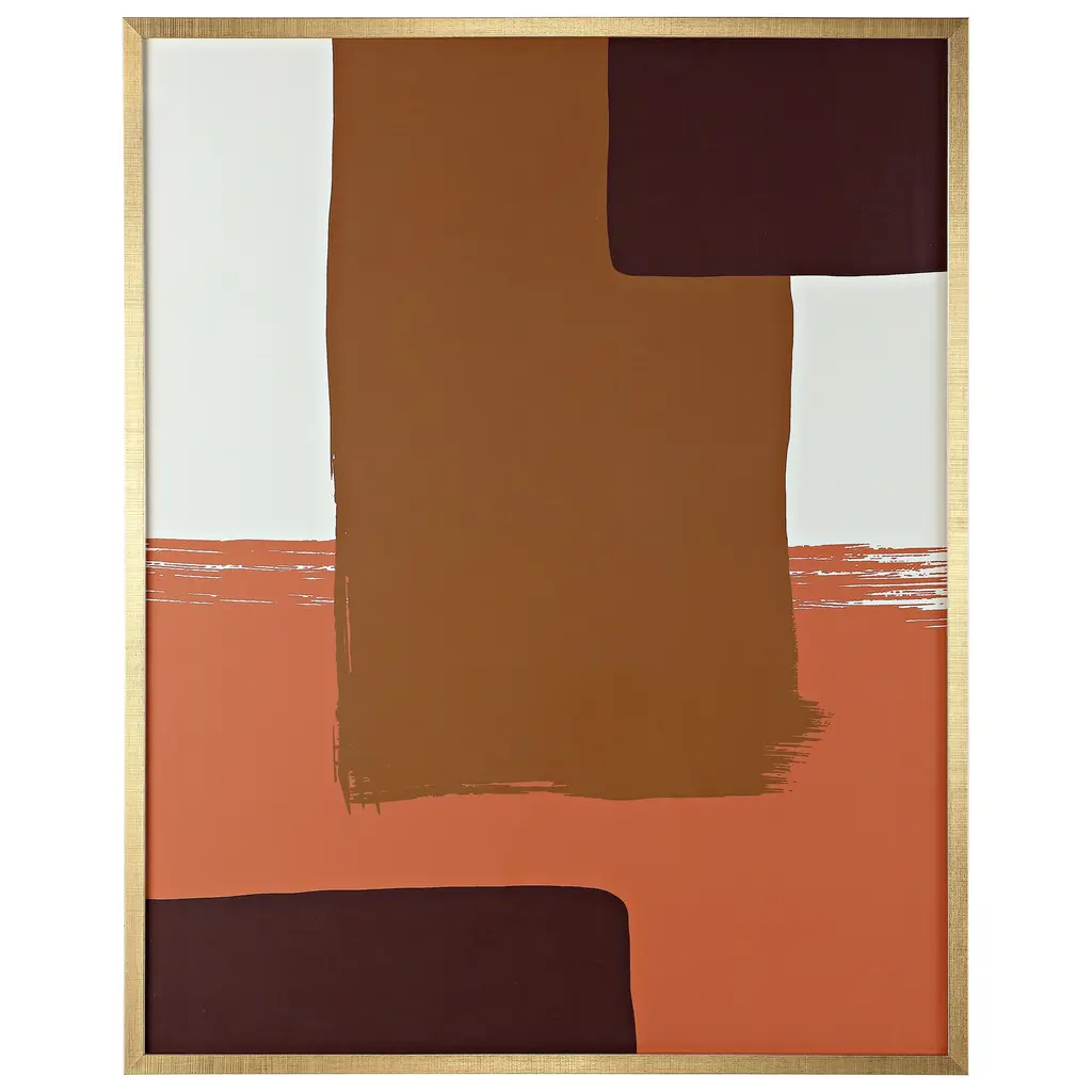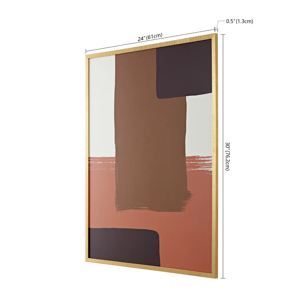 Add a fresh and vibrant touch to your home with the modern and charming "Java Compilation" framed wall art. This beautiful piece features an abstract composition that plays with scale and proportion, creating a visually balanced and poised design. Adorned in rich shades including salmon pink and golden brown, this wall art is sure to brighten up any space. Printed upon paper, each brush stroke is captured, making it a standout feature piece or a stunning addition to your gallery wall.Features: