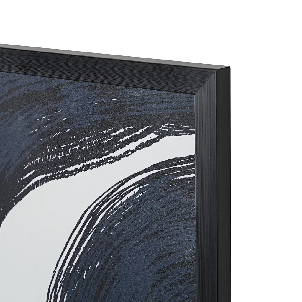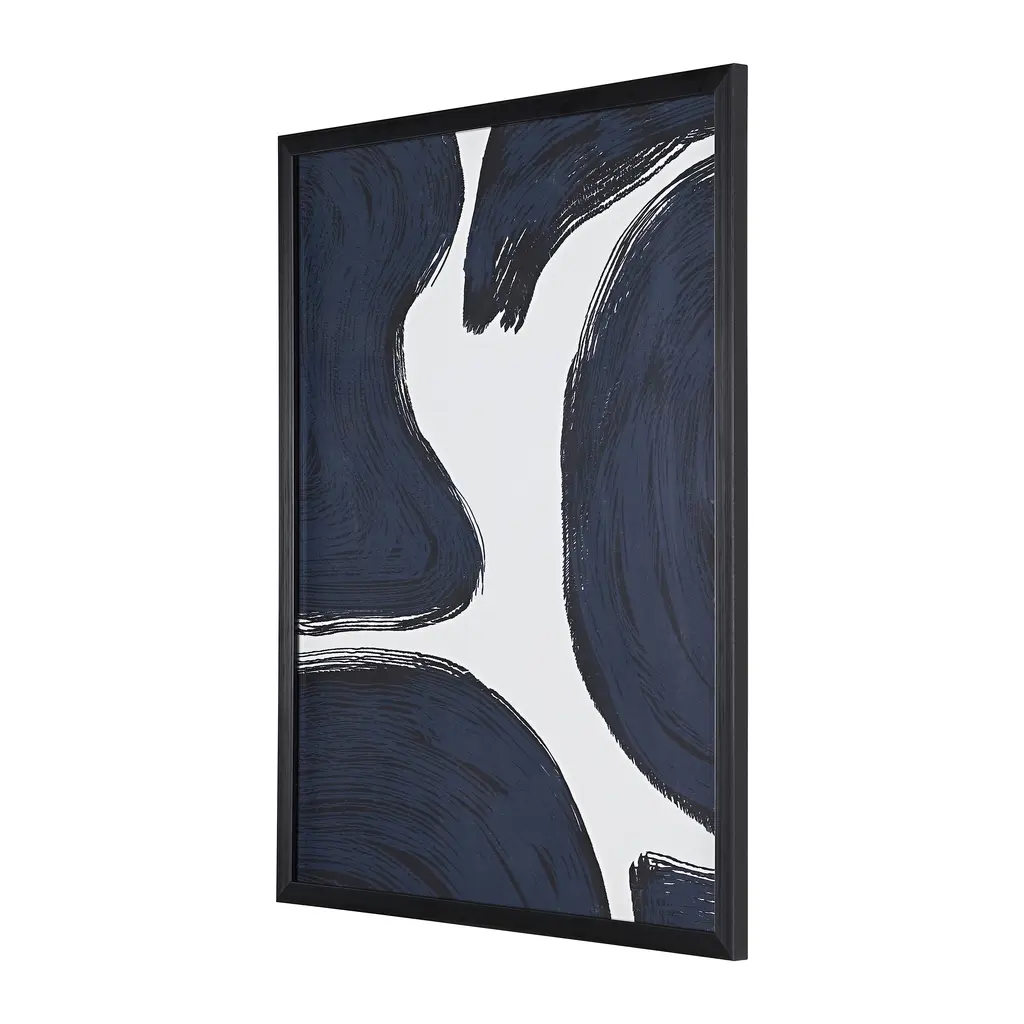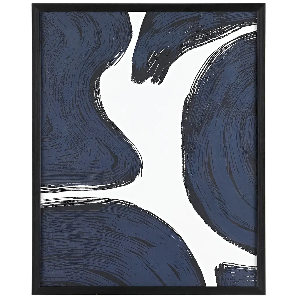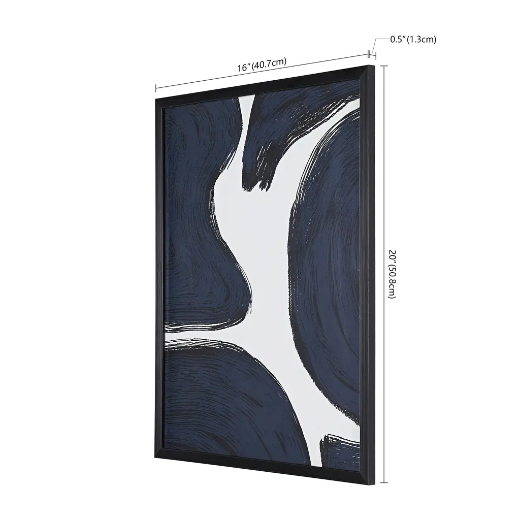 Give a striking contemporary appeal to your walls with our, "Petrichor" framed wall art. Bold abstract shapes come together to deliver an intriguing and flowing negative space. The shapes are painted with vivid brush strokes in midnight blue to lend a stunning visual impact. Our wall art is printed on paper, beautifully capturing each brush stroke to deliver a museum-quality look to your home.