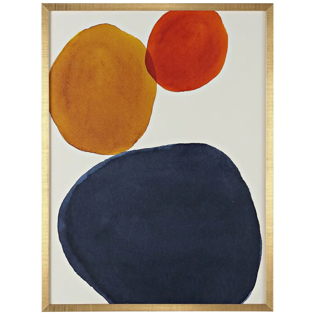 Elevate your walls with the captivating charm and elegance of our "Primary Objective" framed wall art. This minimalistic artwork features richly colored, irregular shapes that create a sense of mystery and intrigue. With a vibrant denim blue and gold color palette, this printed wall art adds a touch of abstract sophistication to your living area, dining room, or home office.Features: