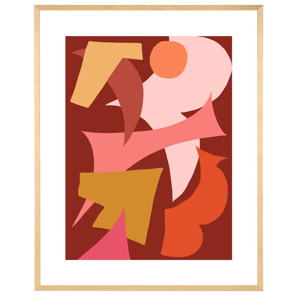 Make a bold and lively statement with our modern "Tango Lessons" framed wall art. Brightly colored, abstract shapes come together in a vibrant and energizing composition. The captivating drama and visual movement of our modern wall art is accentuated with the rich and charming palette of salmon pink and deep red. It creates a vivacious and eye-catching statement to brighten up a gallery wall or features as a standalone centerpiece for your home.