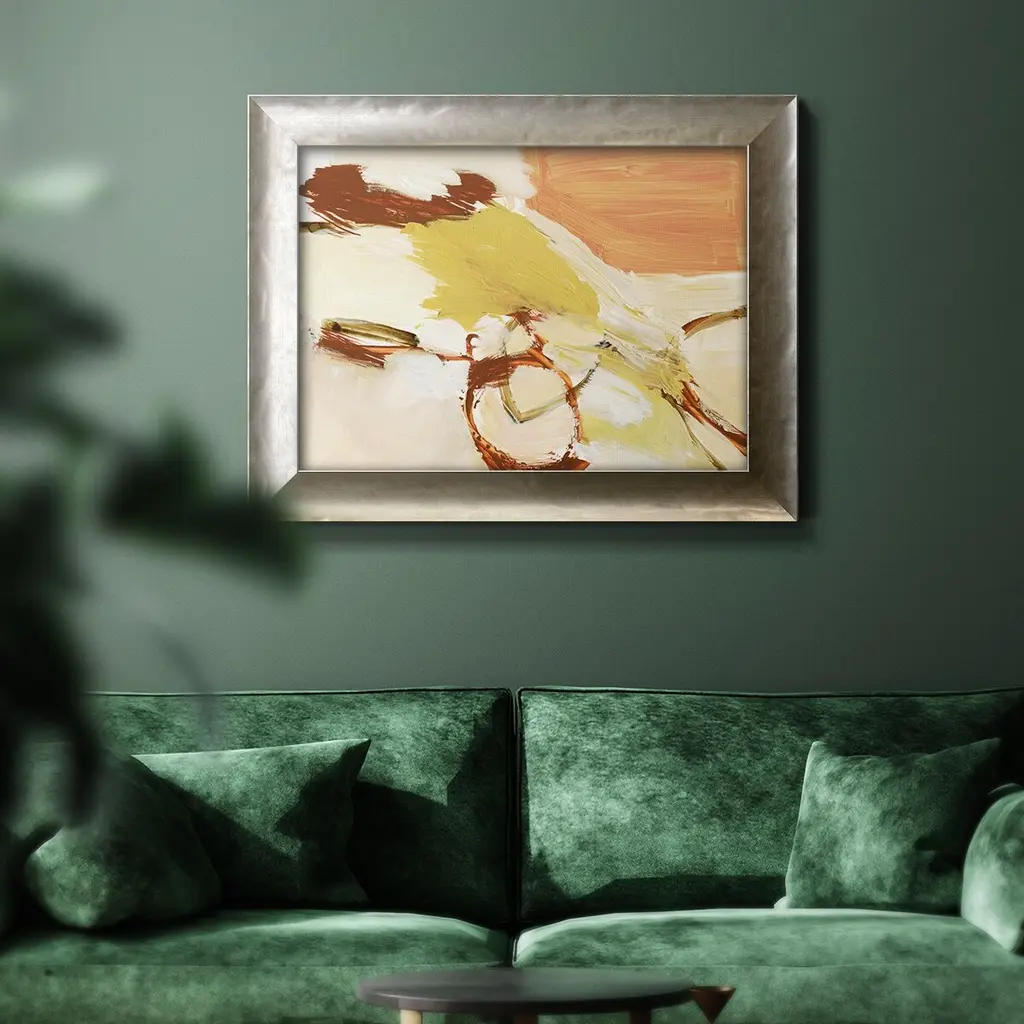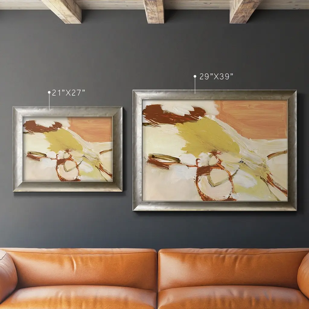 Saffron & Sienna I Premium Framed Canvas- Ready to Hang A Premium Framed Canvas created to last. Framed in distressed wood and available in an array of sizes and colors Featuring a beveled a solid wood stretcher bar, each piece comes ready to hand 3 SIZES AVAILABLE 16''X20'' - Overall Size 18'X27'' - Overall Size 24''x36'' - Overall Size Each piece is made to order. Each piece comes with hanging hardware. Made in the USA Ready to Hang Giclee Paper Print Acrylic Glass Beveled Matt Board