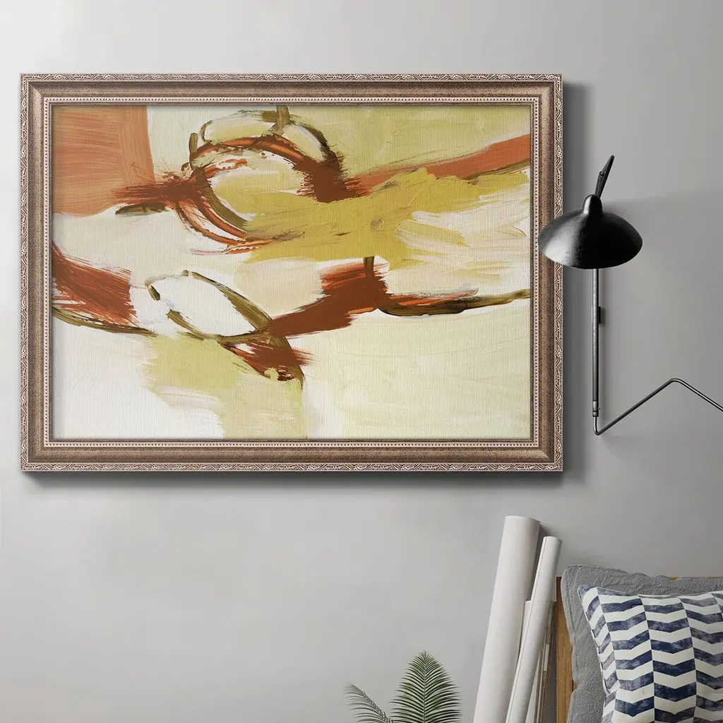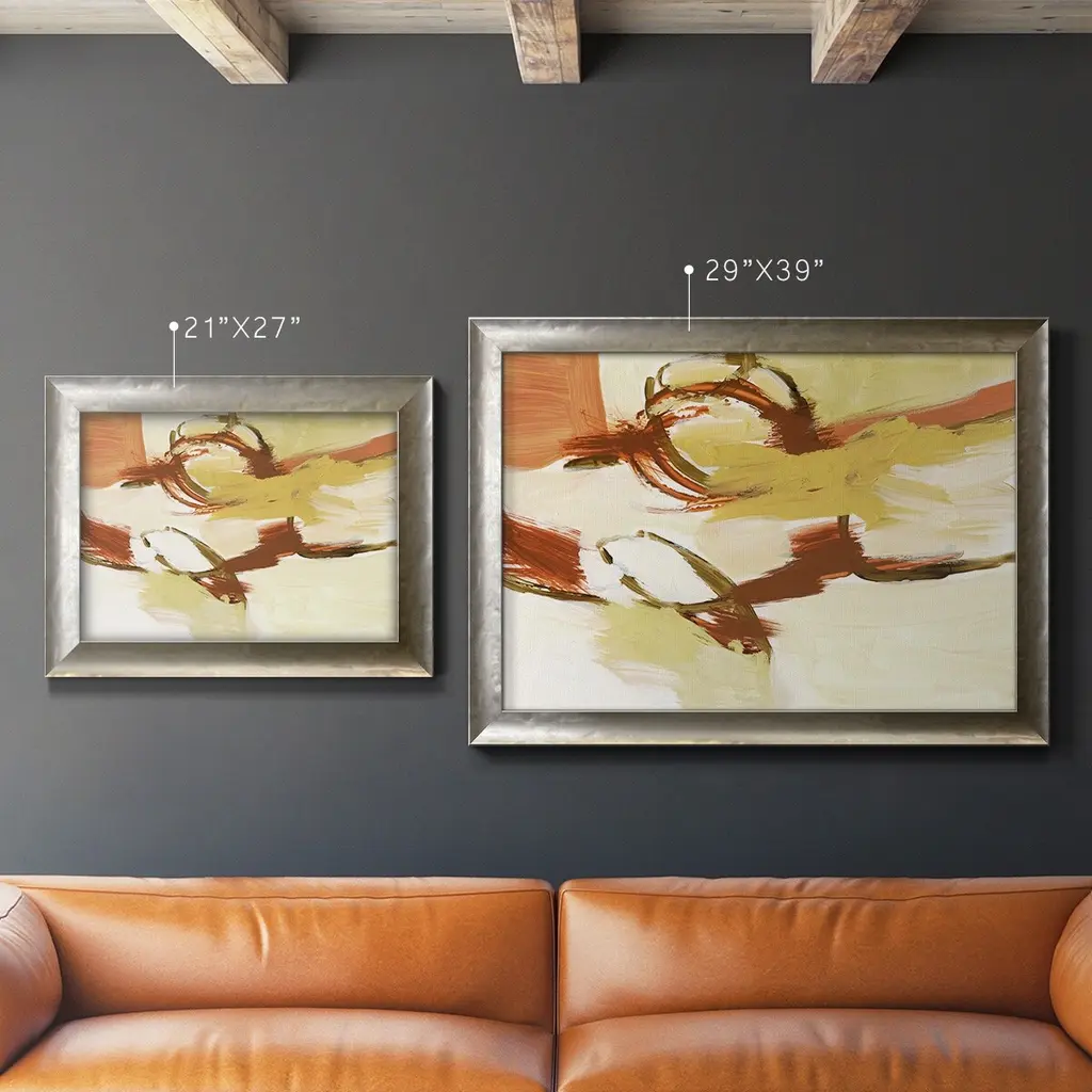 Saffron & Sienna II Premium Framed Canvas- Ready to Hang A Premium Framed Canvas created to last. Framed in distressed wood and available in an array of sizes and colors Featuring a beveled a solid wood stretcher bar, each piece comes ready to hand 3 SIZES AVAILABLE 16''X20'' - Overall Size 18'X27'' - Overall Size 24''x36'' - Overall Size Each piece is made to order. Each piece comes with hanging hardware. Made in the USA Ready to Hang Giclee Paper Print Acrylic Glass Beveled Matt Board