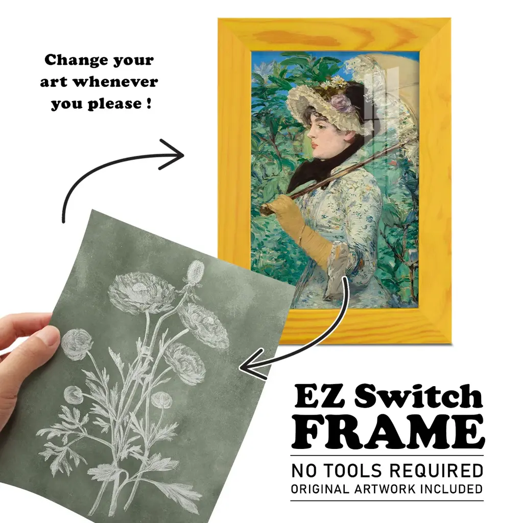 Sage Impressions I -EZ SWITCH Framed Print w/glass-Cherry Red A delightful, framed print. Featuring a solid wood frame with real wood glass. This premium print is giclee quality. In addition, every frame features a removable back and table top stand. This allows you to change your art in the future or to just stand the art on a table for a new look. We are sure you'll enjoy our new series of EZ SWITCH Framed Art. Solid Wood Frame Real Glass Removable / Replaceable Art Built in Tabletop Stand Sizes range from 4x6 up to 12x15 - buy just one or pair them up as sets as you see fit.
