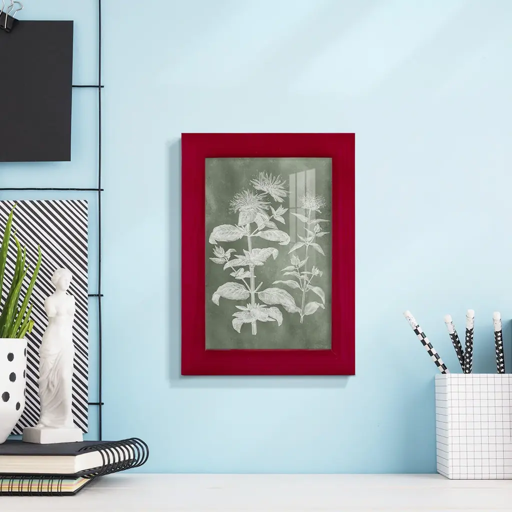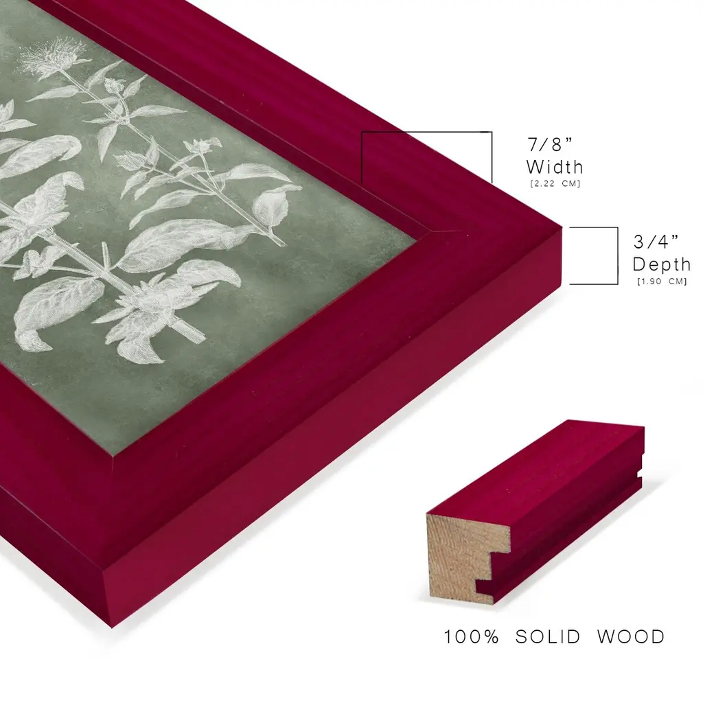 Sage Impressions III -EZ SWITCH Framed Print w/glass-Cherry Red A delightful, framed print. Featuring a solid wood frame with real wood glass. This premium print is giclee quality. In addition, every frame features a removable back and table top stand. This allows you to change your art in the future or to just stand the art on a table for a new look. We are sure you'll enjoy our new series of EZ SWITCH Framed Art. Solid Wood Frame Real Glass Removable / Replaceable Art Built in Tabletop Stand Sizes range from 4x6 up to 12x15 - buy just one or pair them up as sets as you see fit.