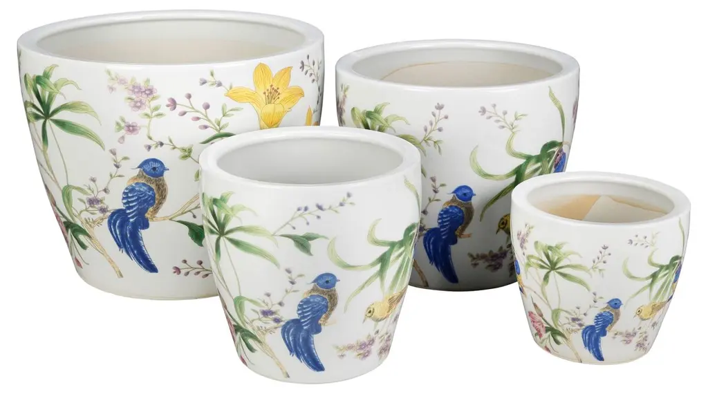 Sagebrook Home 3Pc Chinoiserie Bird Veramic Indoor Outdoor Planter Pots Blue/white