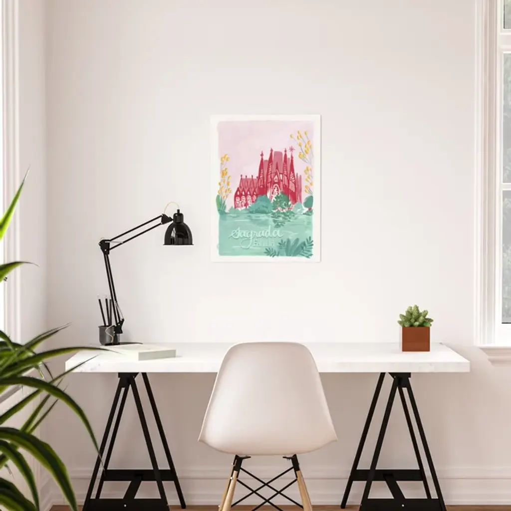 Sagrada Familia- Landscape Hand-Painted Illustration Poster