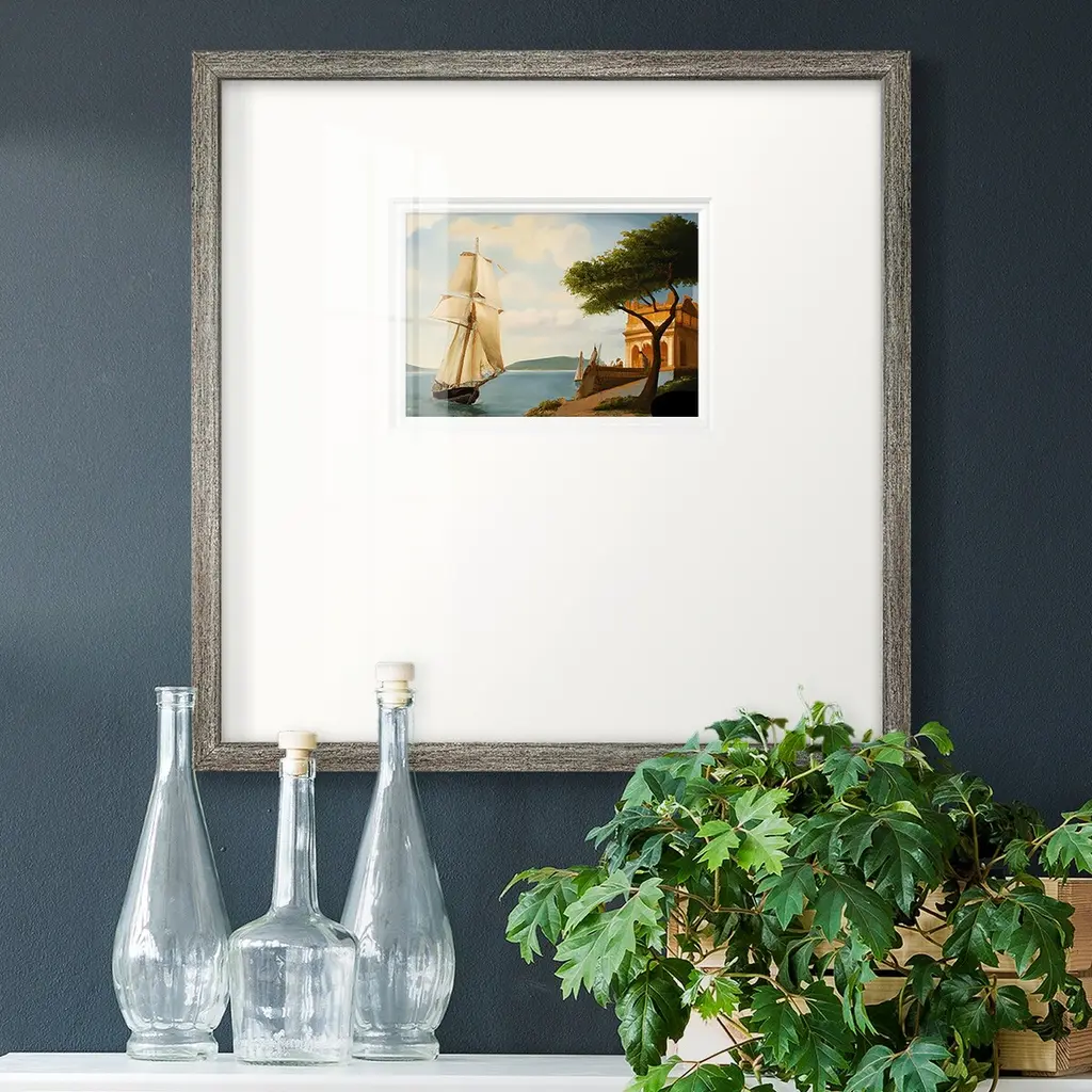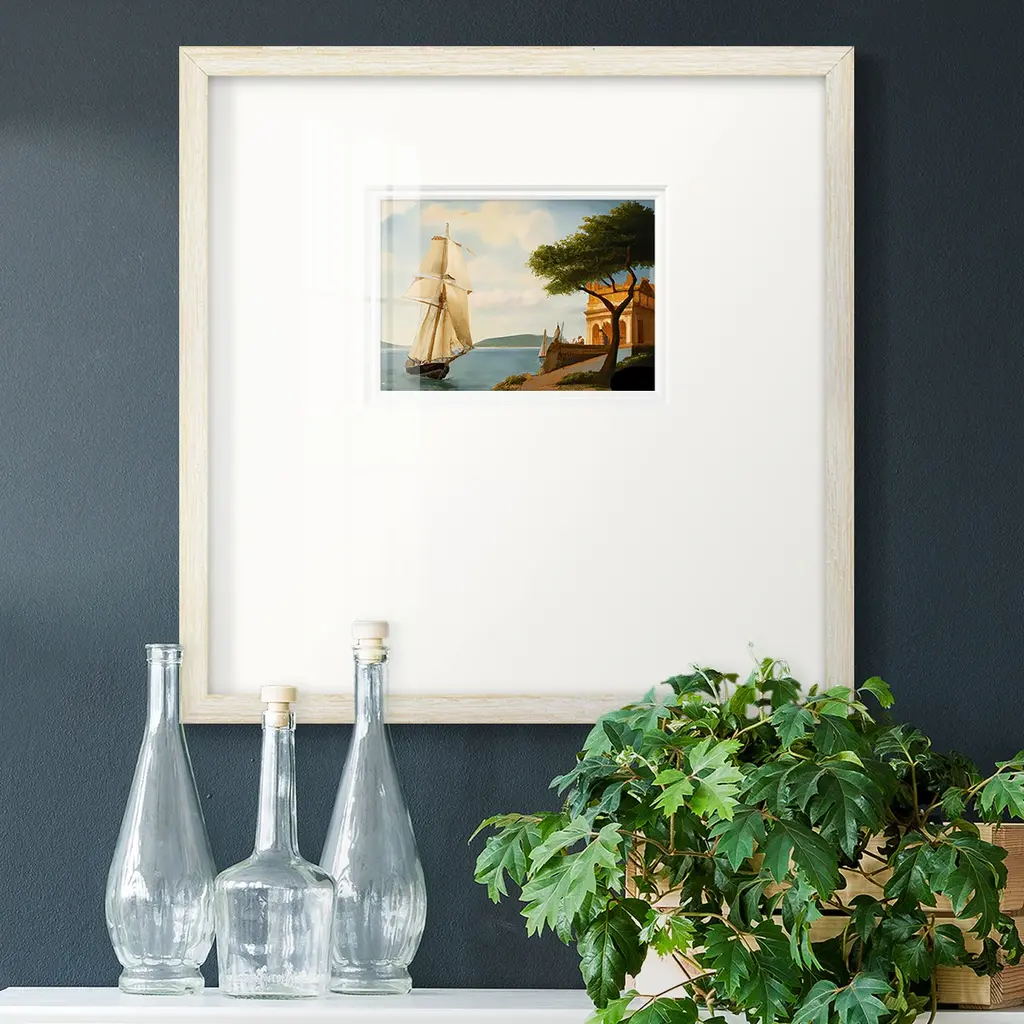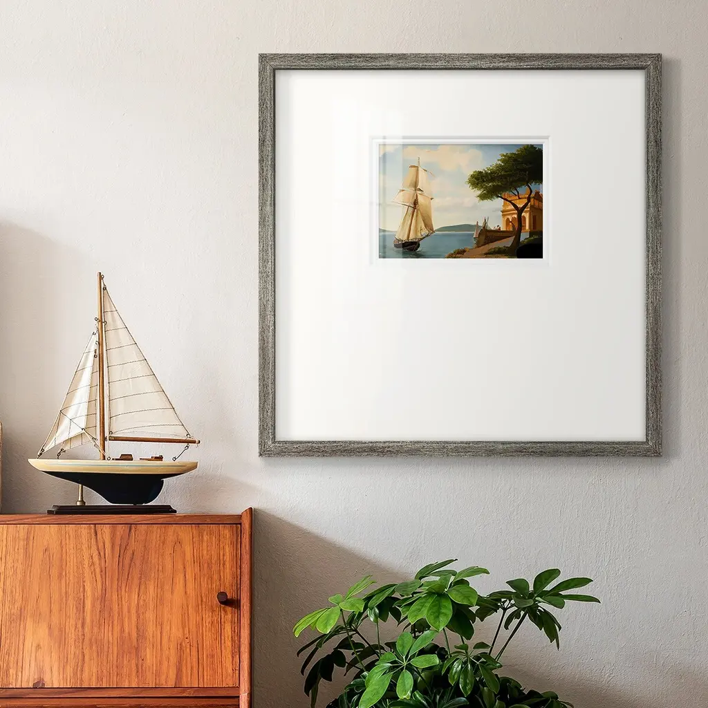Sail Boat on the EdgePremium Framed Print A framed cold pressed paper print featuring superior double matting and quality frame. 2 SIZES AVAILABLE 16''X16''' - Overall Size 20''X20''' - Overall Size Each piece is made to order. Each piece comes with hanging hardware. Made in the USA Ready to Hang Giclee Paper Print Plexiglass Beveled Matt Board Double Matte Board