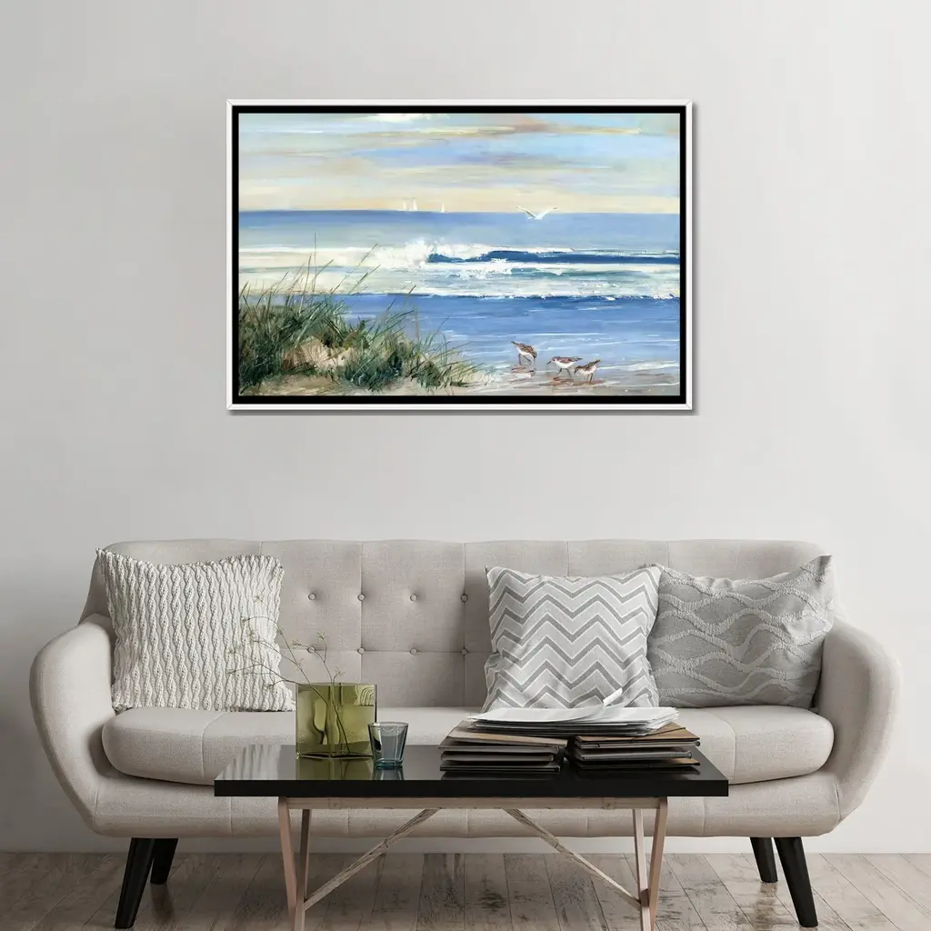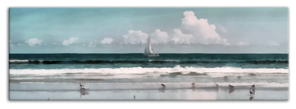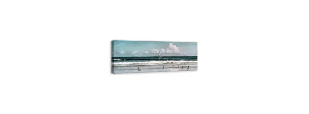 The Sailboat Beach Scene 20x60 Canvas Wall Art features an image of relaxing seaside escape complete with dreamy blue oceans, seagulls, and a sailboat on the horizon. This canvas helps you add some coastal art to your home. The solid front construction of each wall art product ensures it does not stretch or sag. The result is a beautiful piece of artwork worthy of showcasing in your home.