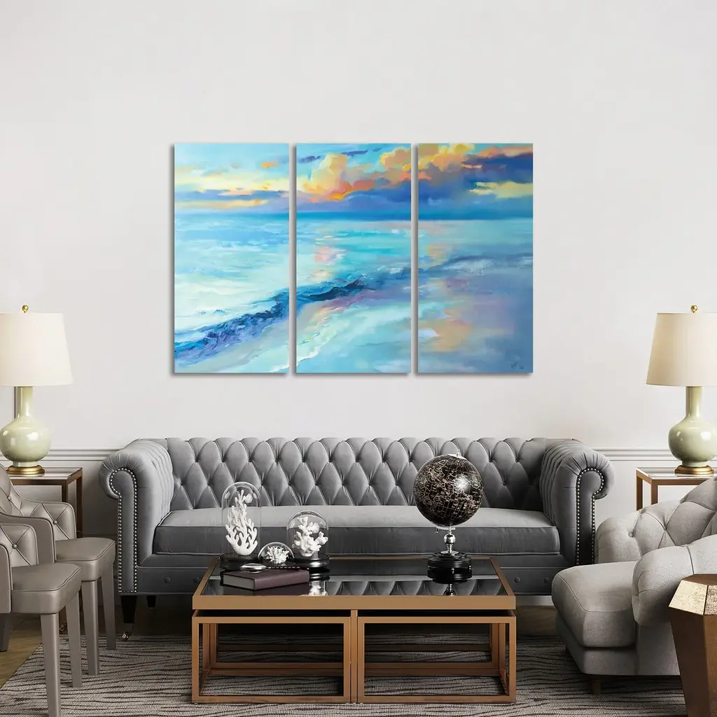 Proudly made in the USA! Our canvas triptychs are our newest and most distinguished offering yet! Each panel is mounted on sturdy 1.5 inch frame. Our vivid canvas is hand cut, then stretched and comes ready to hang. At this size, and with multiple pieces, it is sure to be a focal point of the room.