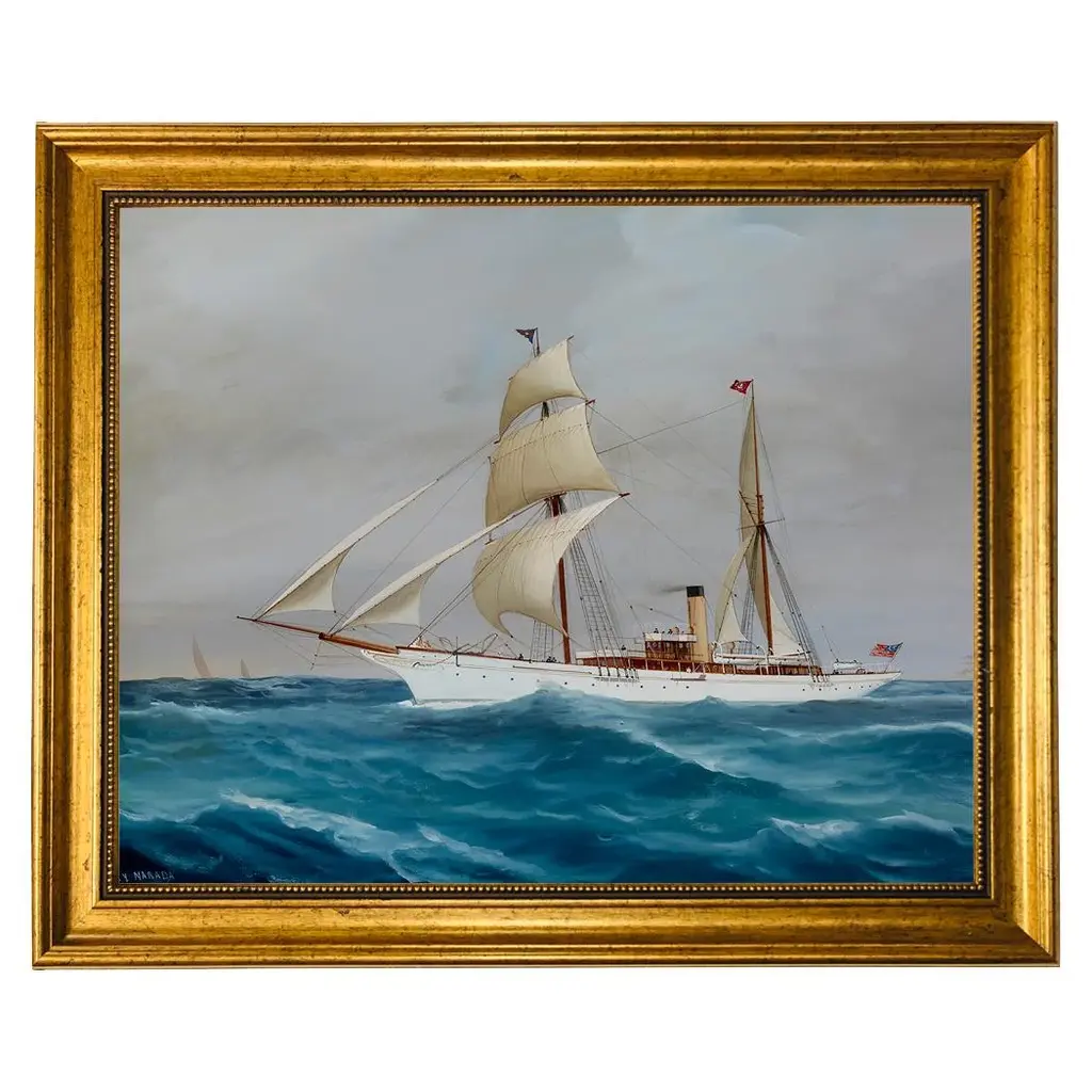 "Sailing Yacht Narada" After Antonio Desimone, Contemporary Reproduction Print On Canvas, Framed, 16 X 20