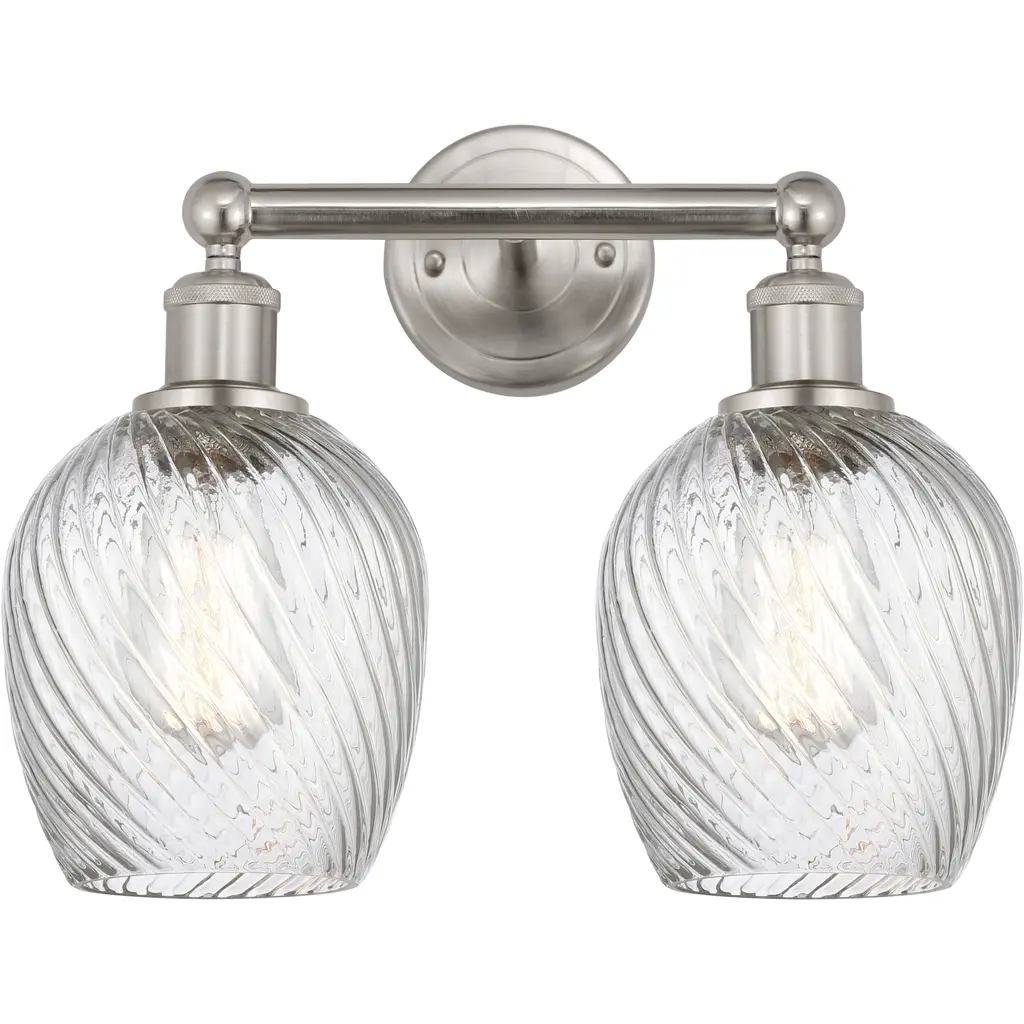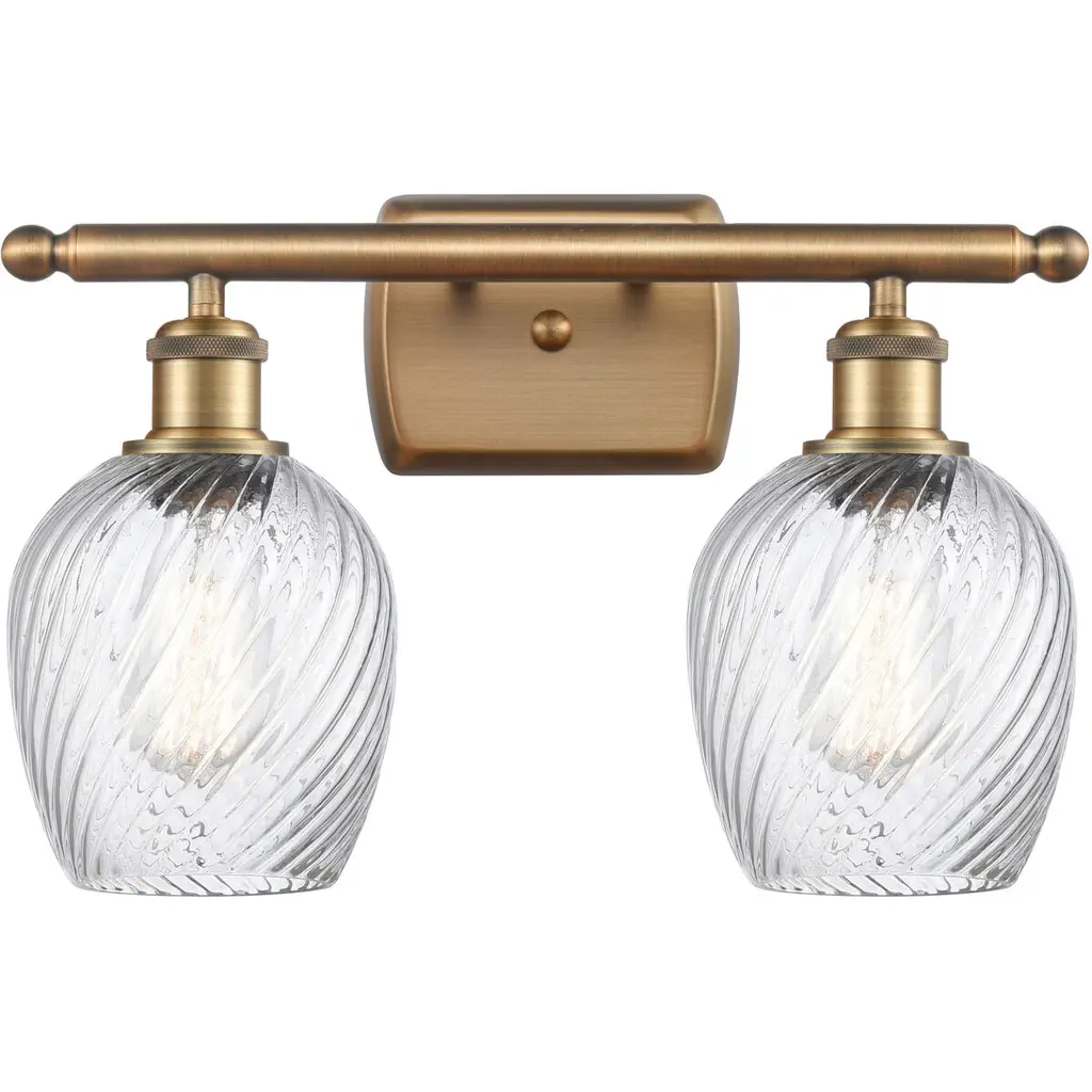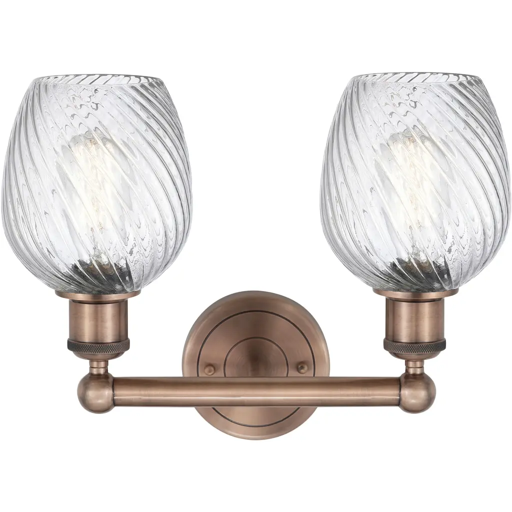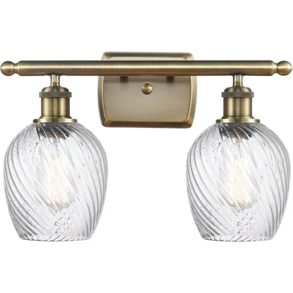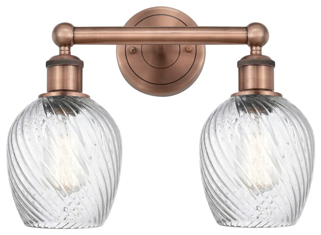 Salina - 2 Light 14" Bath Vanity Light - Antique Copper Finish - Clear Spiral Fluted Shade