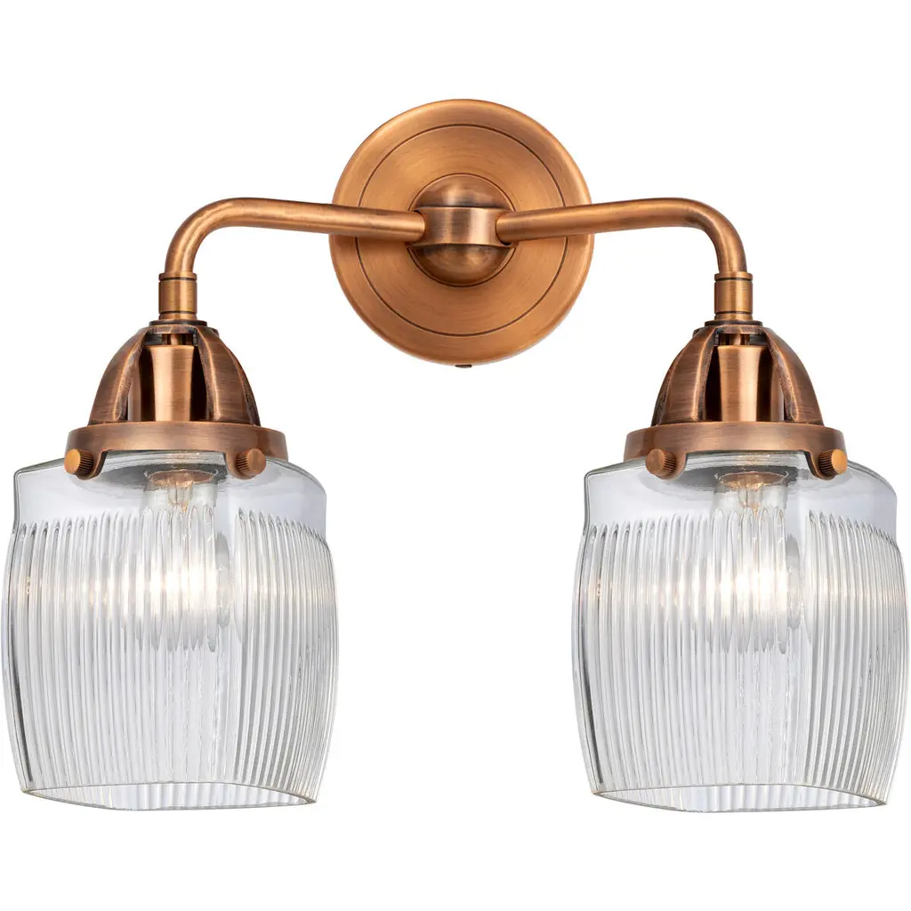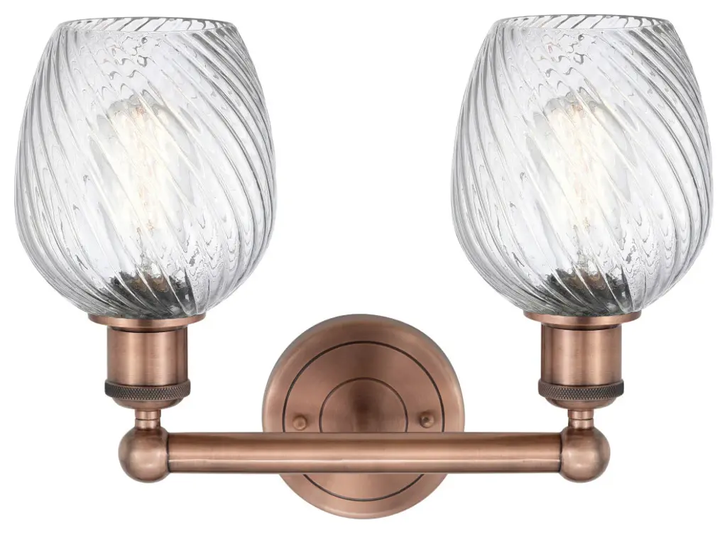 Salina 2-Light 14" Vanity Light, Antique Copper With Clear Spiral Fluted Shade