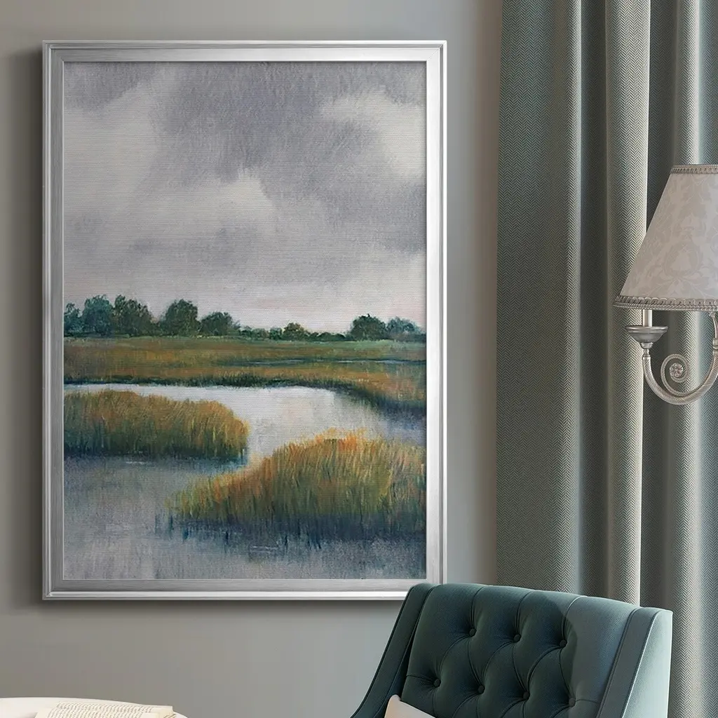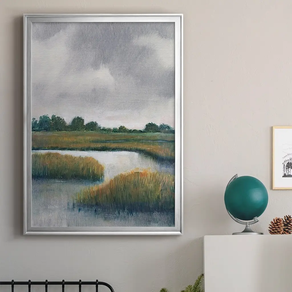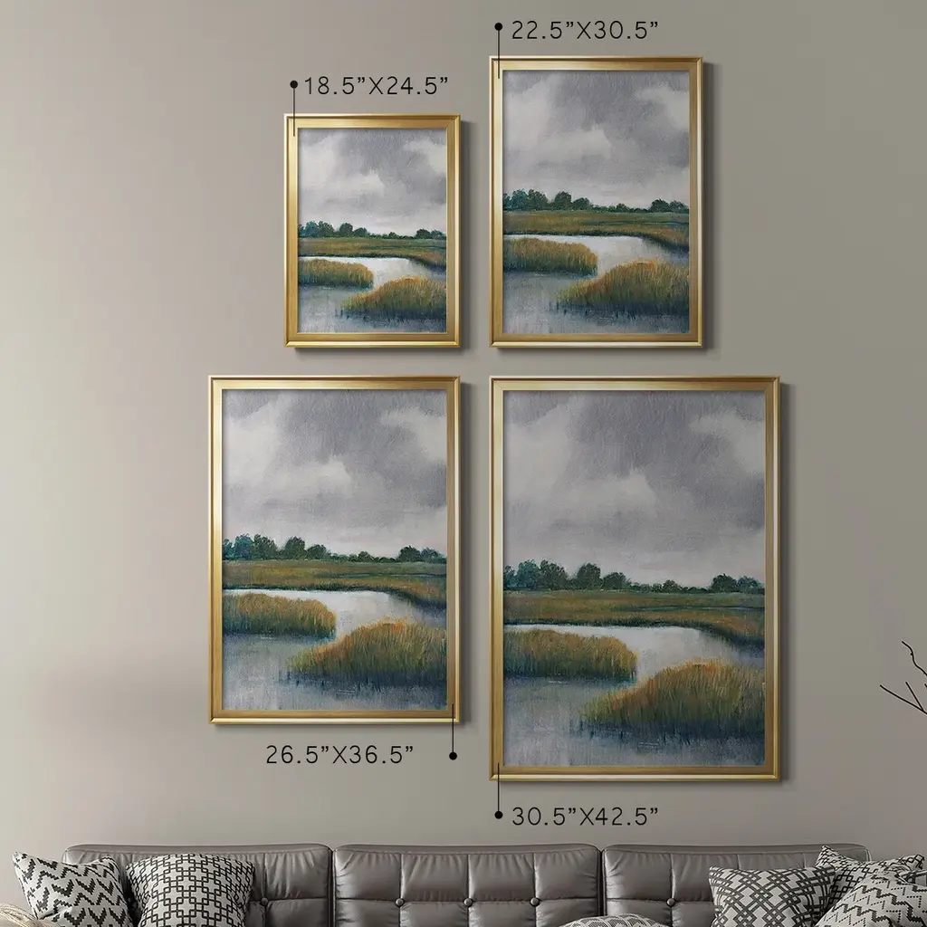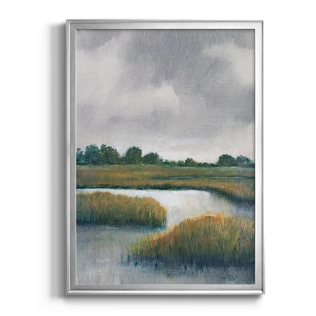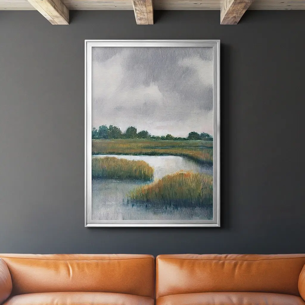 Salt Marshes I Premium Framed Print - Ready to Hang A Premium Framed Print created to last. Framed in distressed wood and available in an array of sizes and colors Featuring a beveled a solid wood stretcher bar, each piece comes ready to hand 4 SIZES AVAILABLE 30.5''X42.5'' - Overall Size 26.5'X36.5'' - Overall Size 22.5''x30.5'' - Overall Size 18.5''x24.5'' - Overall Size Each piece is made to order. Each piece comes with hanging hardware. Made in the USA Ready to Hang
