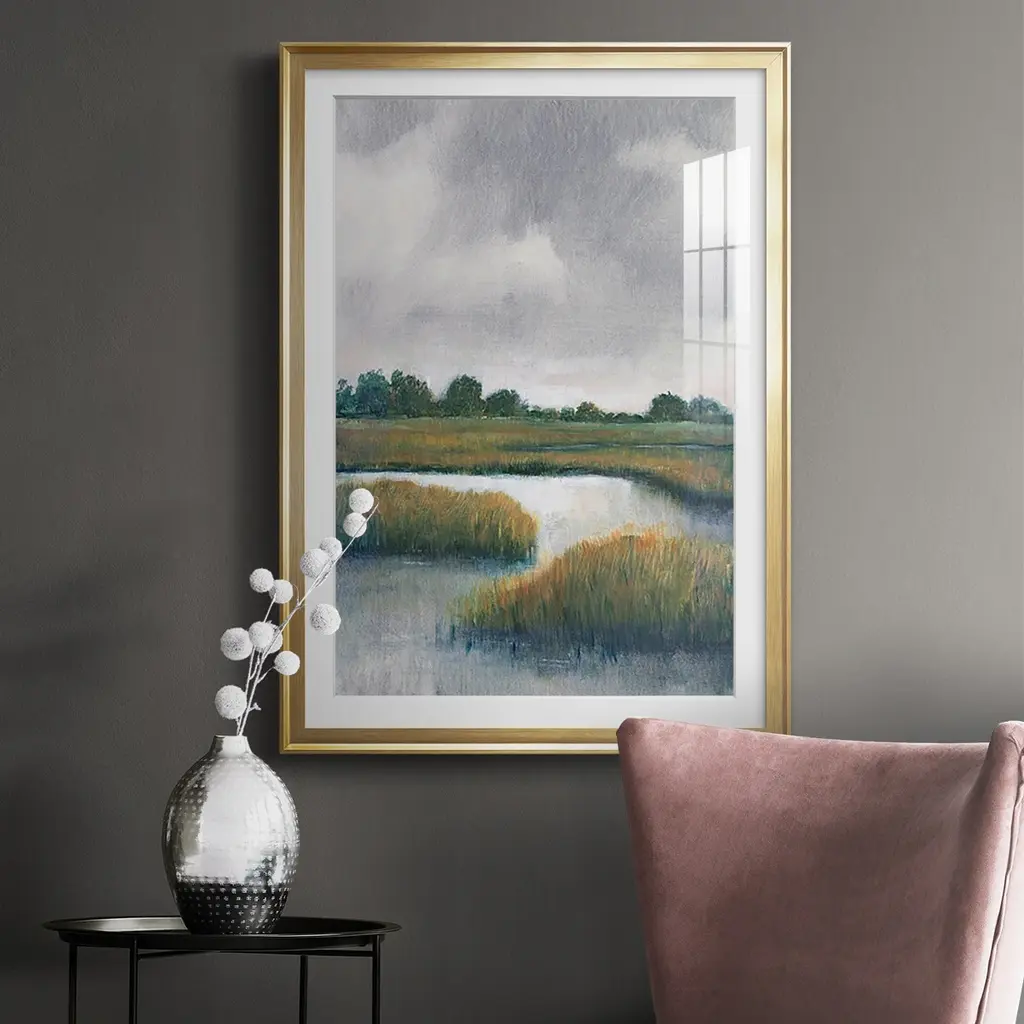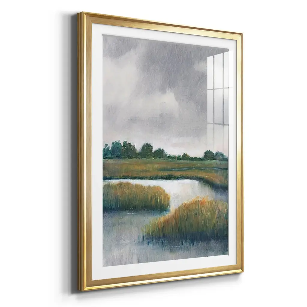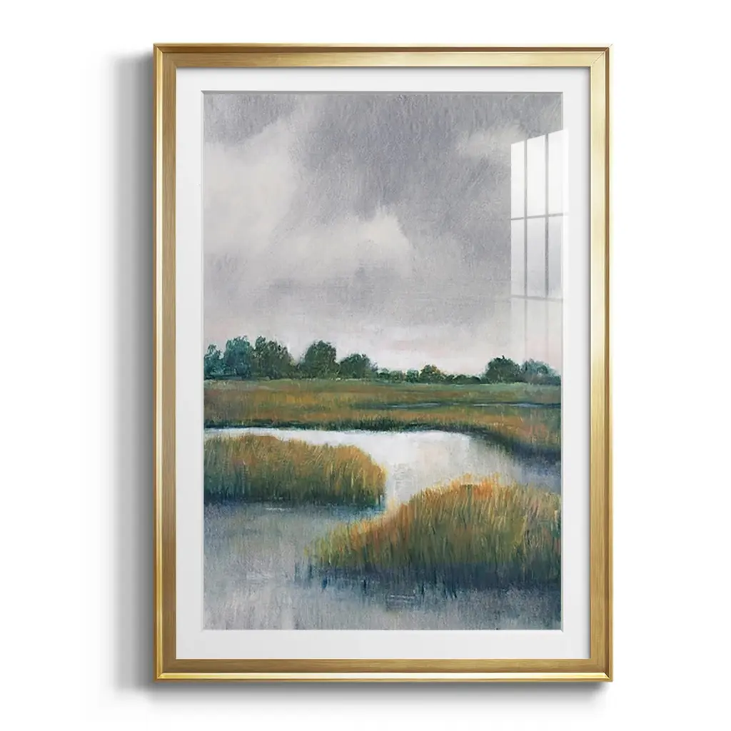 Salt Marshes I Premium Framed Print - Ready to Hang A Premium Framed Print created to last. Framed in distressed wood and available in an array of sizes and colors Featuring a beveled a solid wood stretcher bar, each piece comes ready to hand 4 SIZES AVAILABLE 30.5''X42.5'' - Overall Size 26.5'X36.5'' - Overall Size 22.5''x30.5'' - Overall Size 18.5''x24.5'' - Overall Size Each piece is made to order. Each piece comes with hanging hardware. Made in the USA Ready to Hang Giclee Paper Print Acrylic Glass Beveled Matt Board