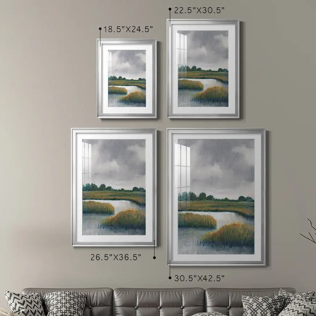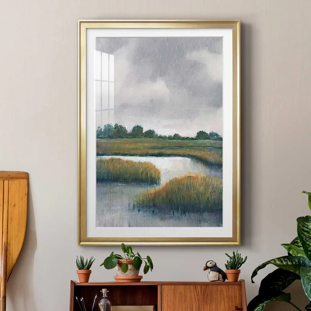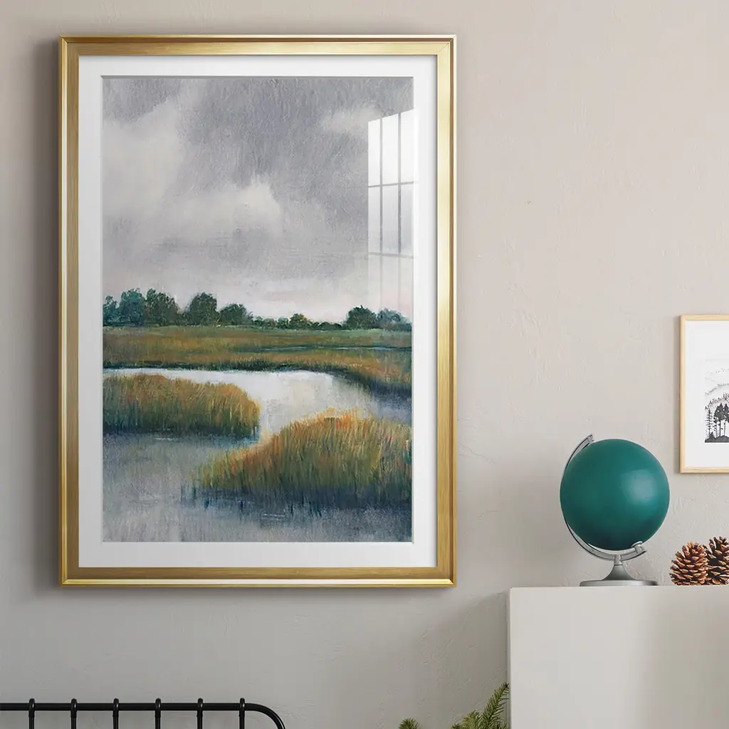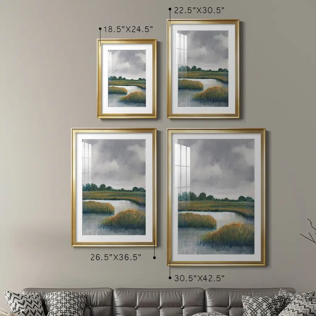 Salt Marshes I Premium Framed Print - Ready to Hang A Premium Framed Print created to last. Framed in distressed wood and available in an array of sizes and colors Featuring a beveled a solid wood stretcher bar, each piece comes ready to hand 4 SIZES AVAILABLE 30.5''X42.5'' - Overall Size 26.5'X36.5'' - Overall Size 22.5''x30.5'' - Overall Size 18.5''x24.5'' - Overall Size Each piece is made to order. Each piece comes with hanging hardware. Made in the USA Ready to Hang Giclee Paper Print Acrylic Glass Beveled Matt Board