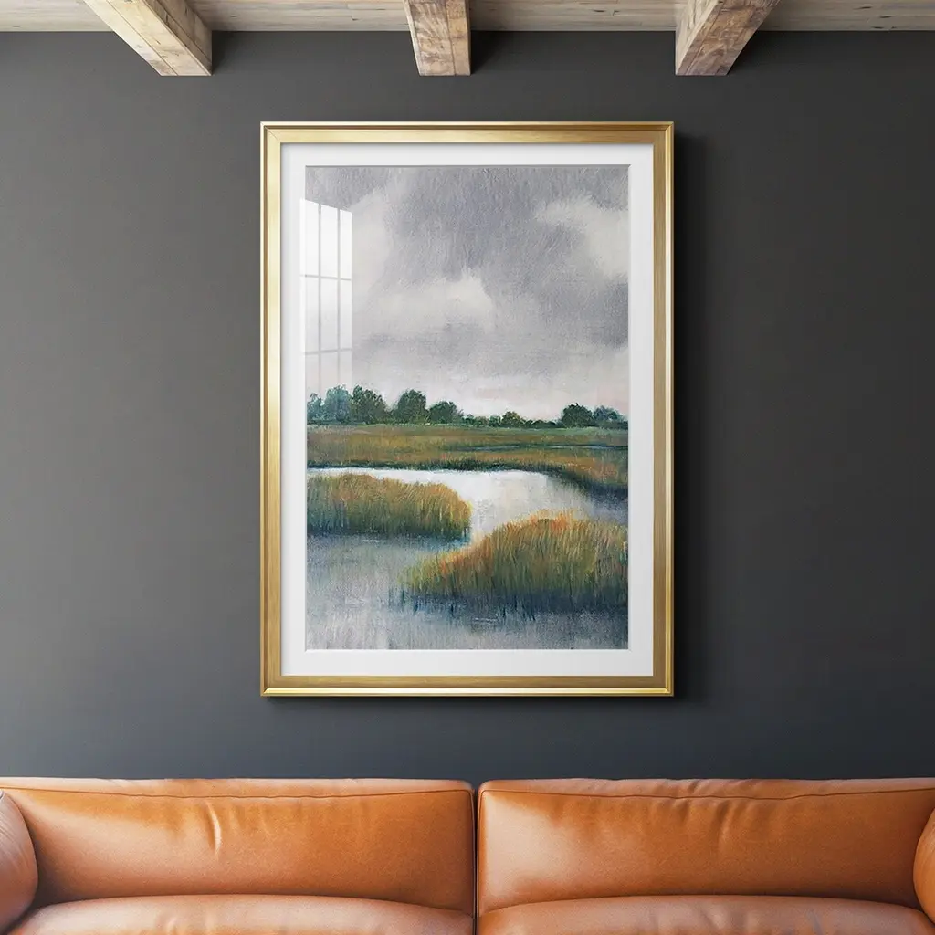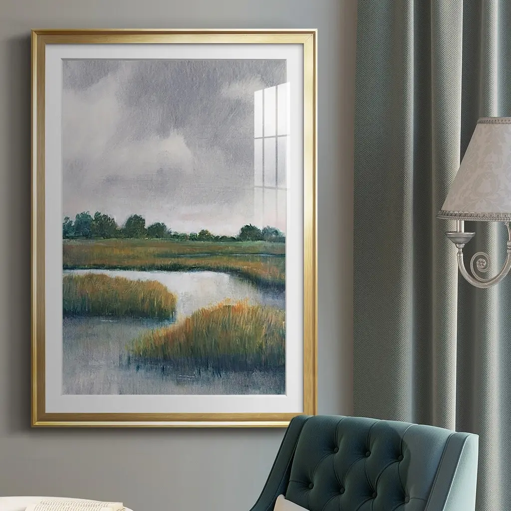 Salt Marshes I Premium Framed Print - Ready to Hang A Premium Framed Print created to last. Framed in distressed wood and available in an array of sizes and colors Featuring a beveled a solid wood stretcher bar, each piece comes ready to hand 4 SIZES AVAILABLE 30.5''X42.5'' - Overall Size 26.5'X36.5'' - Overall Size 22.5''x30.5'' - Overall Size 18.5''x24.5'' - Overall Size Each piece is made to order. Each piece comes with hanging hardware. Made in the USA Ready to Hang Giclee Paper Print Acrylic Glass Beveled Matt Board