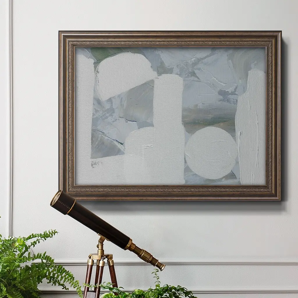 Saltwater Tide III Premium Framed Canvas- Ready to Hang A Premium Framed Canvas created to last. Framed in distressed wood and available in an array of sizes and colors Featuring a beveled a solid wood stretcher bar, each piece comes ready to hand 3 SIZES AVAILABLE 16''X20'' - Overall Size 18'X27'' - Overall Size 24''x36'' - Overall Size Each piece is made to order. Each piece comes with hanging hardware. Made in the USA Ready to Hang Giclee Paper Print Acrylic Glass Beveled Matt Board