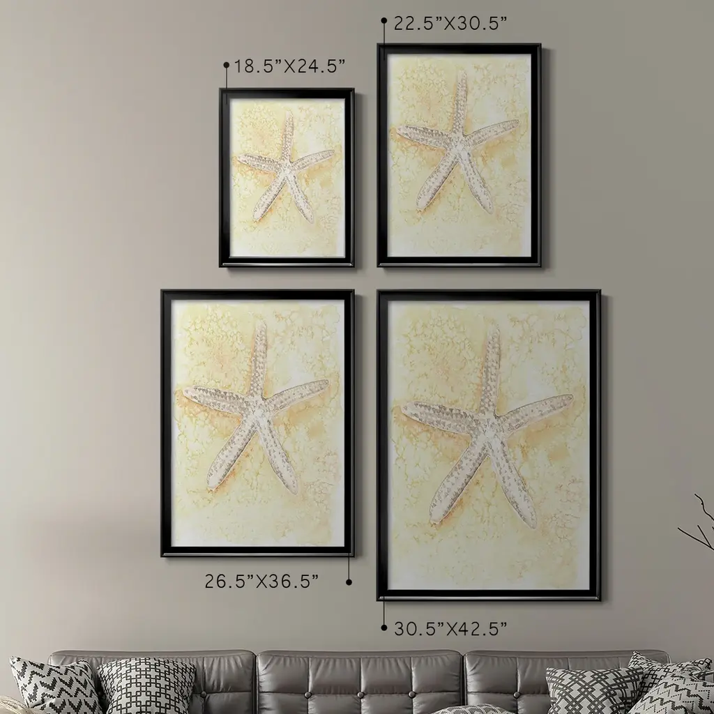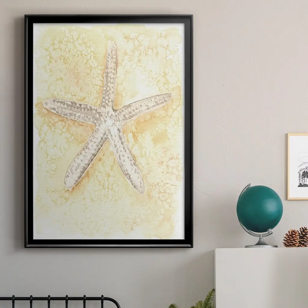 Salty Seashell I Premium Framed Print - Ready to Hang A Premium Framed Print created to last. Framed in distressed wood and available in an array of sizes and colors Featuring a beveled a solid wood stretcher bar, each piece comes ready to hand 4 SIZES AVAILABLE 30.5''X42.5'' - Overall Size 26.5'X36.5'' - Overall Size 22.5''x30.5'' - Overall Size 18.5''x24.5'' - Overall Size Each piece is made to order. Each piece comes with hanging hardware. Made in the USA Ready to Hang