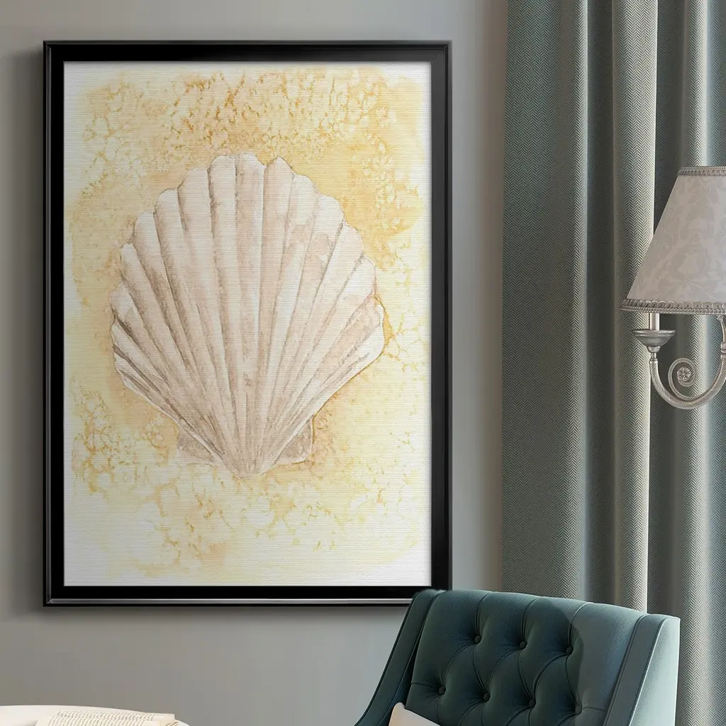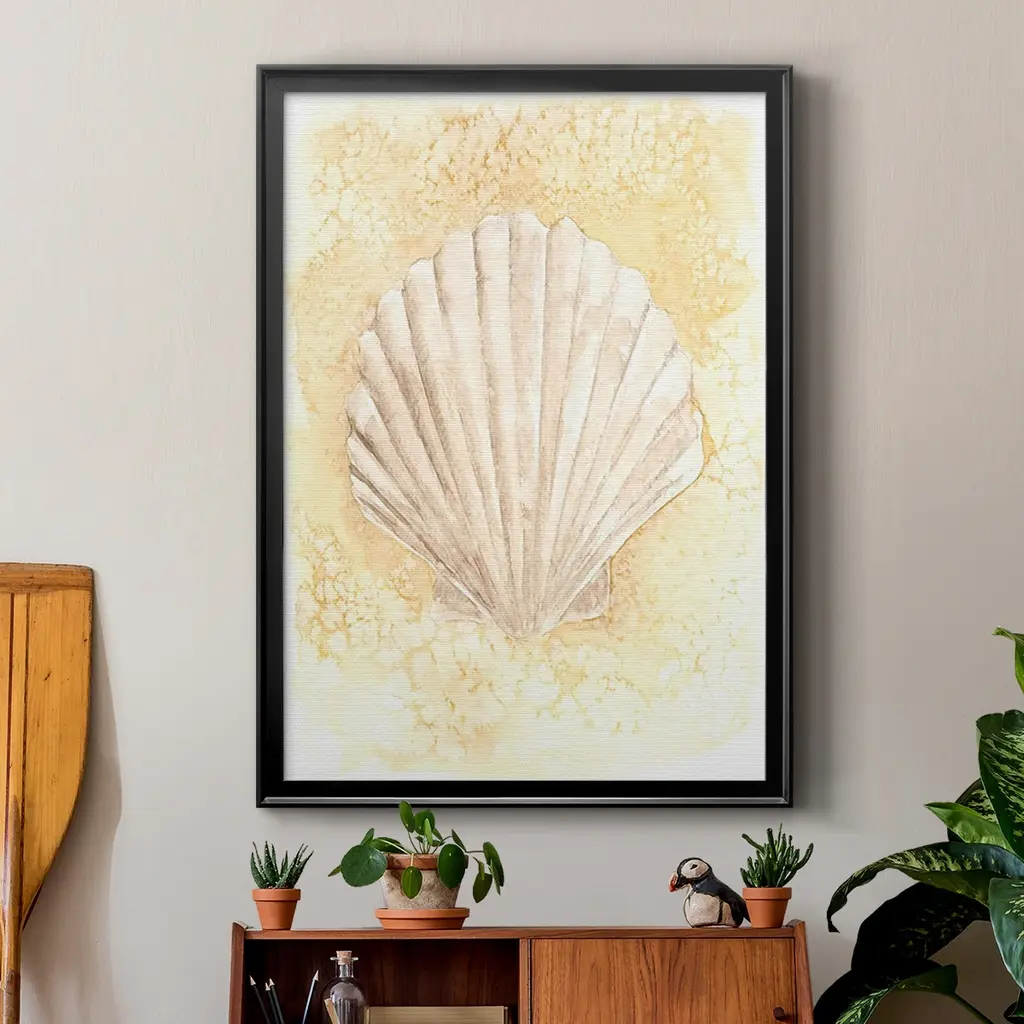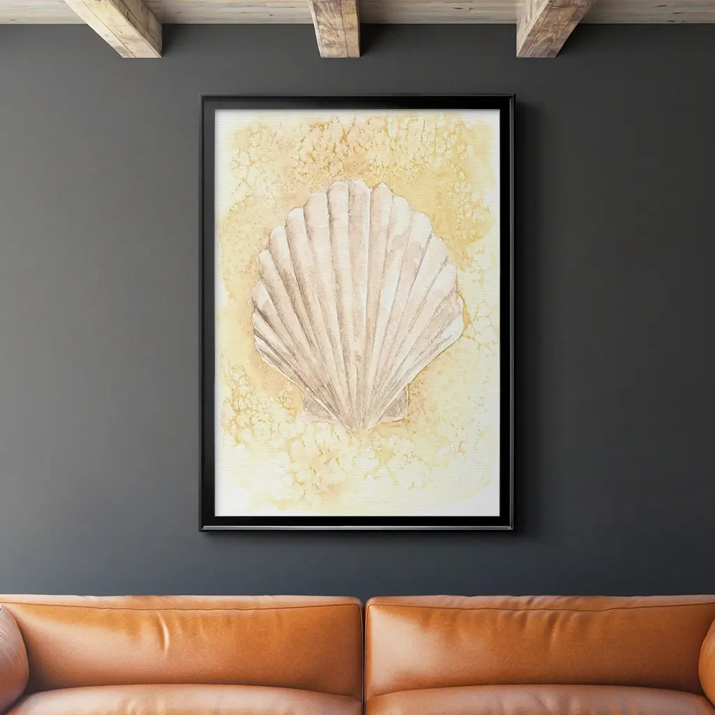 Salty Seashell II Premium Framed Print - Ready to Hang A Premium Framed Print created to last. Framed in distressed wood and available in an array of sizes and colors Featuring a beveled a solid wood stretcher bar, each piece comes ready to hand 4 SIZES AVAILABLE 30.5''X42.5'' - Overall Size 26.5'X36.5'' - Overall Size 22.5''x30.5'' - Overall Size 18.5''x24.5'' - Overall Size Each piece is made to order. Each piece comes with hanging hardware. Made in the USA Ready to Hang