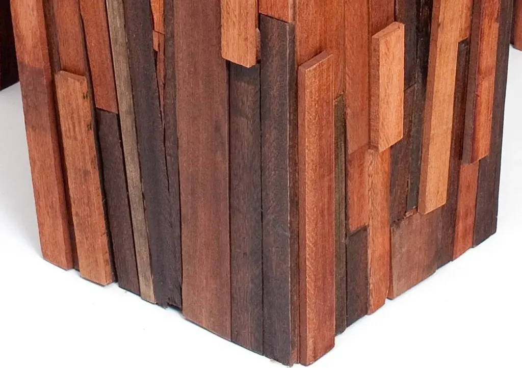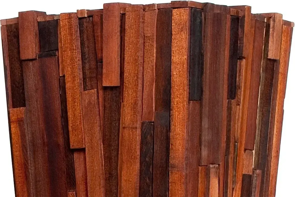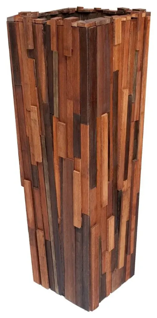Planters made as a mosaic of salvaged wood pieces from different species, arranged together. Designed to use what is left over from the production of larger furniture items such as cocktail tables, dining tables and consoles, the Salvaged Wood Planters use scraps of hardwood collected from our own manufacturing process.Dimensions: 14" x 14" x 47"HThe beauty of nature captured in design. Highly sought-after, instantly recognizable, individually hand-crafted furniture.Rotsen Furniture creates furniture and artwork integrating wood''s organic characteristics with a clean, graceful, modernist aesthetic. Each piece is individually and meticulously hand-crafted, often combining wood with metal, glass or Plexiglas resulting in pieces of exquisite craftsmanship.Each piece is unique and can be customized per client''s specifications.