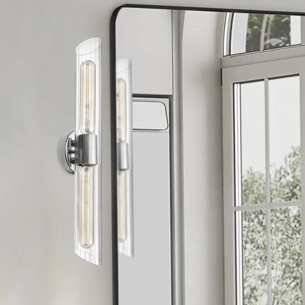 Light that's housed in elegant fluted glass forms the basis of the design for the Samantha family of lighting fixtures. It's an opulent look that will enhance transitional décor schemes, with touches of mid-century as well as contemporary styles. The metal frame contrasts with clear fluted glass in each available configuration, from the vertical vanity lights to horizontal pendant lighting. The details create a noticeable statement of your sophisticated tastes. With its varied configurations, Samantha lighting is suitable for both smaller and larger spaces, including vanity options as well as pendants for dining and living rooms.