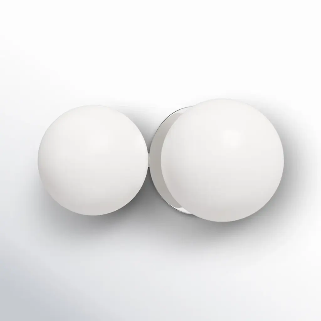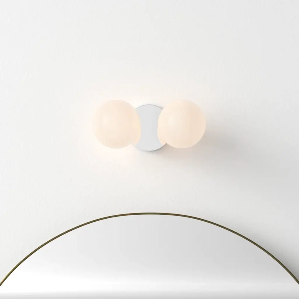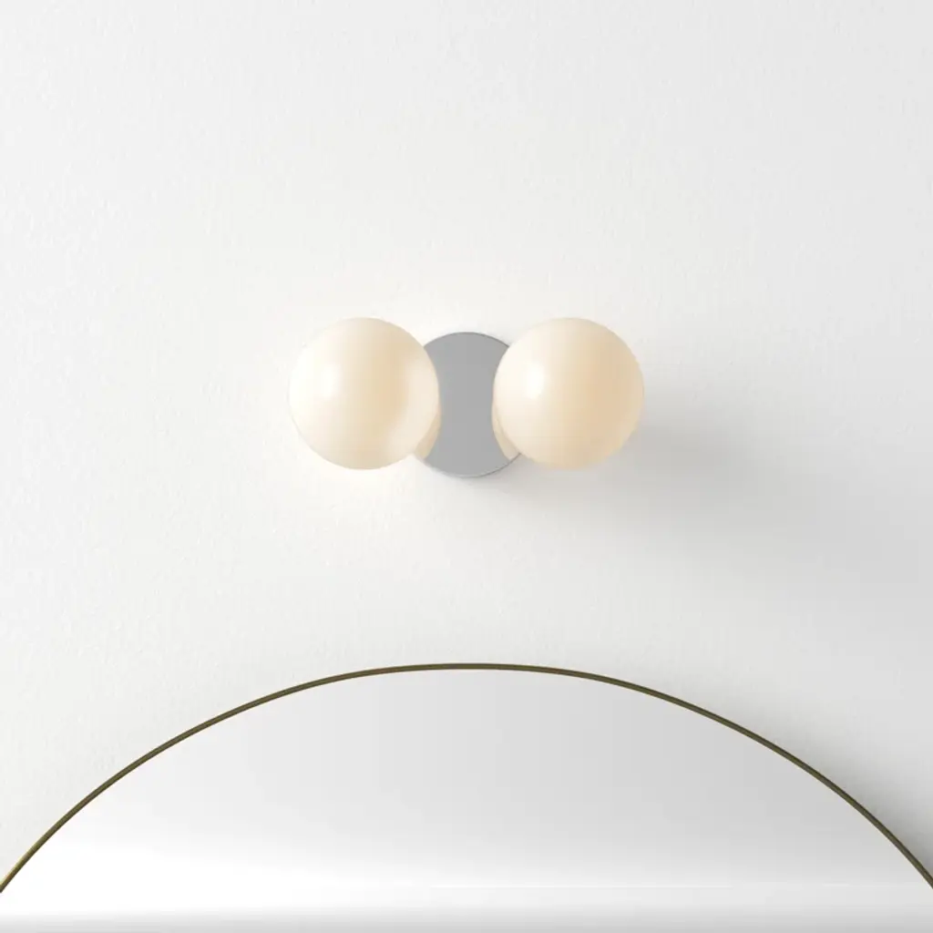 Circle and sphere pair to breathe new life into a classic form. Mouth-blown spheres soften the light, attached to thick, circular backplates. Paired together, these two elements lighten not just the room but the mood, the playful spirit behind this fixture shining through.