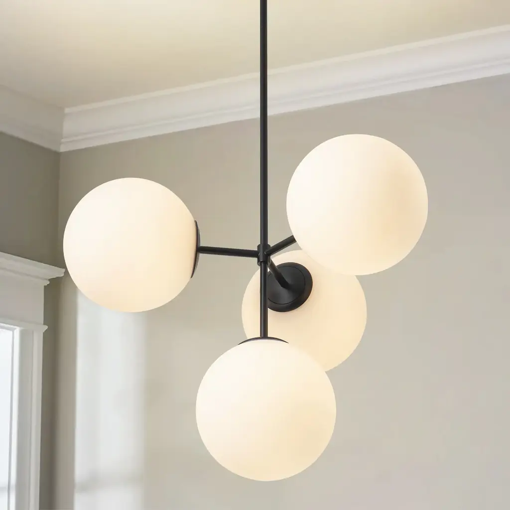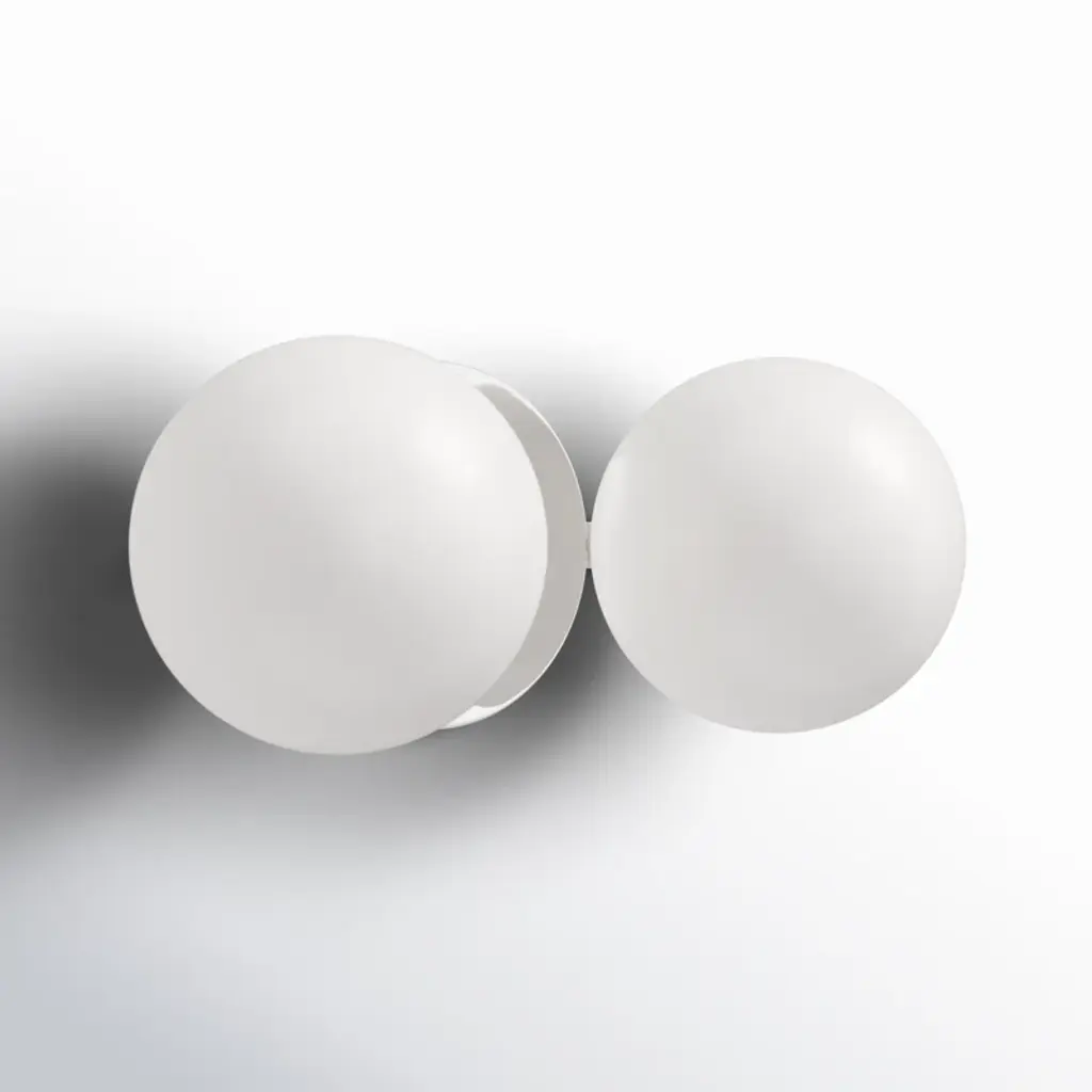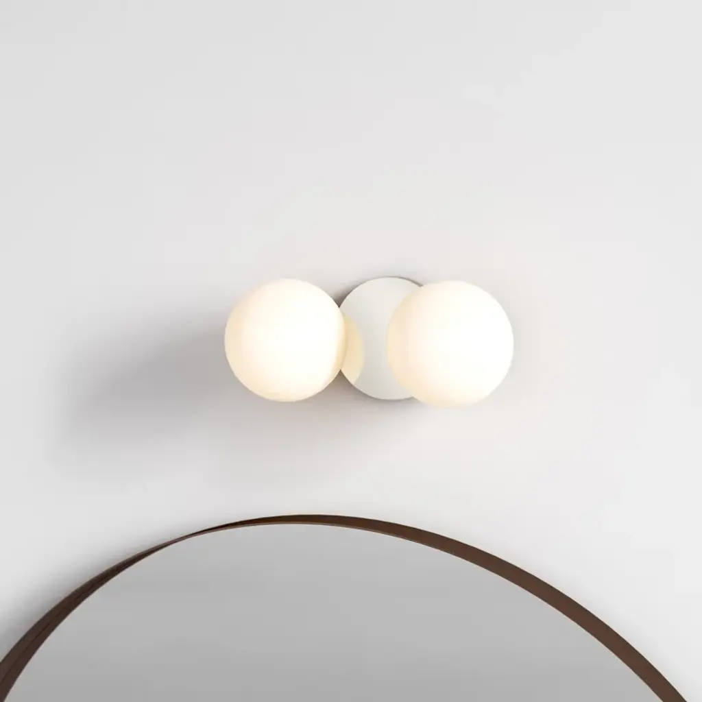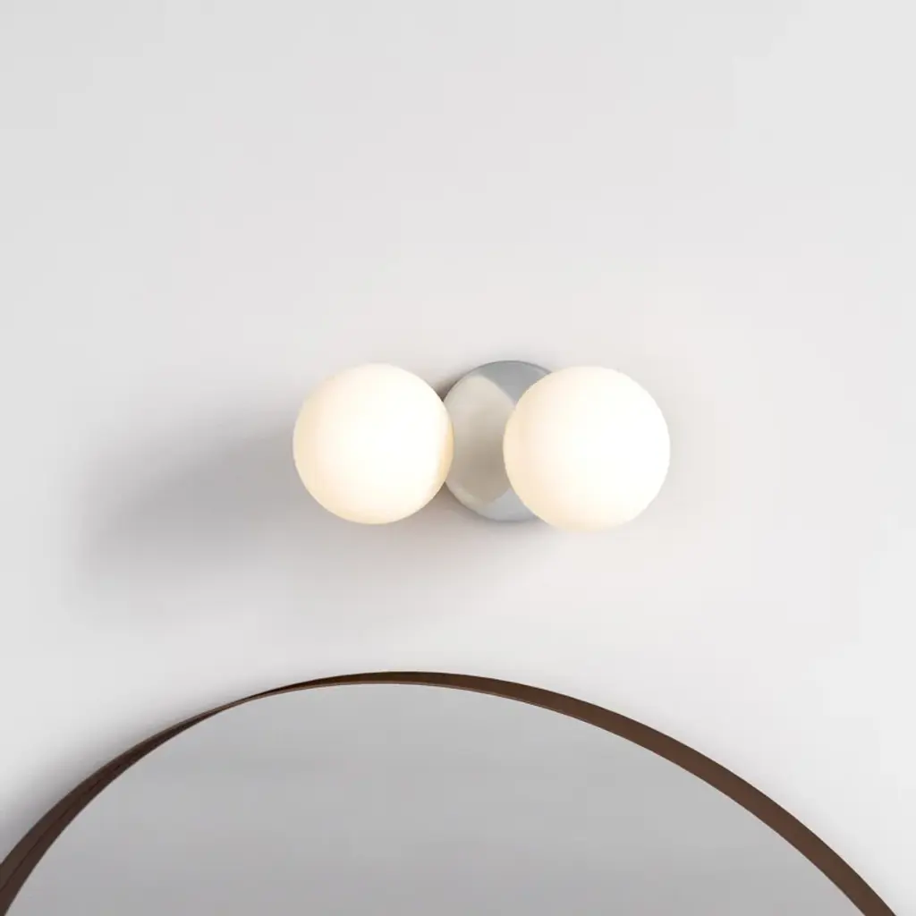 Circle and sphere pair to breathe new life into a classic form. Mouth-blown spheres soften the light, attached to thick, circular backplates. Paired together, these two elements lighten not just the room but the mood, the playful spirit behind this fixture shining through.