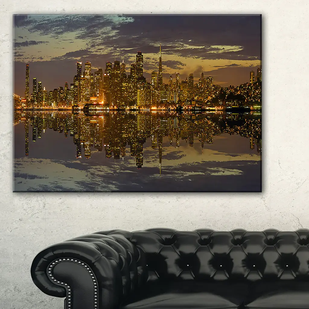 The San Francisco at Sunset Panorama canvas art print is sure to make an impression on anyone who sees it. This artwork is gallery wrapped around a 1-inch solid wood frame and arrives carefully packaged and entirely ready to hang on the wall. Design Art only uses the highest resolution and pigments to ensure a crisp colorful print that is never faded or pixelated. This artwork is sure to be a conversation starter in any home or office.
