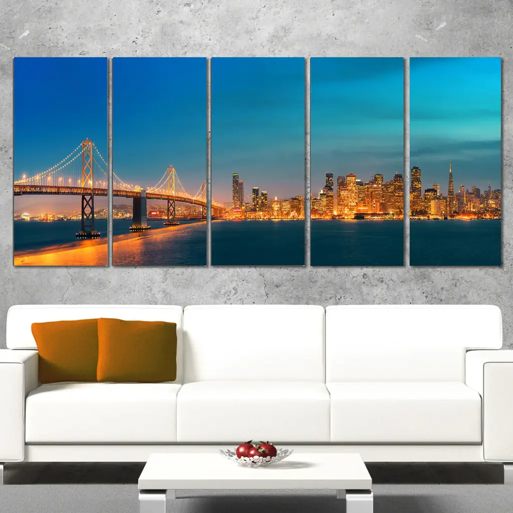"San Francisco Skyline At Night" Cityscape Canvas Print60"x28", 5-Panels