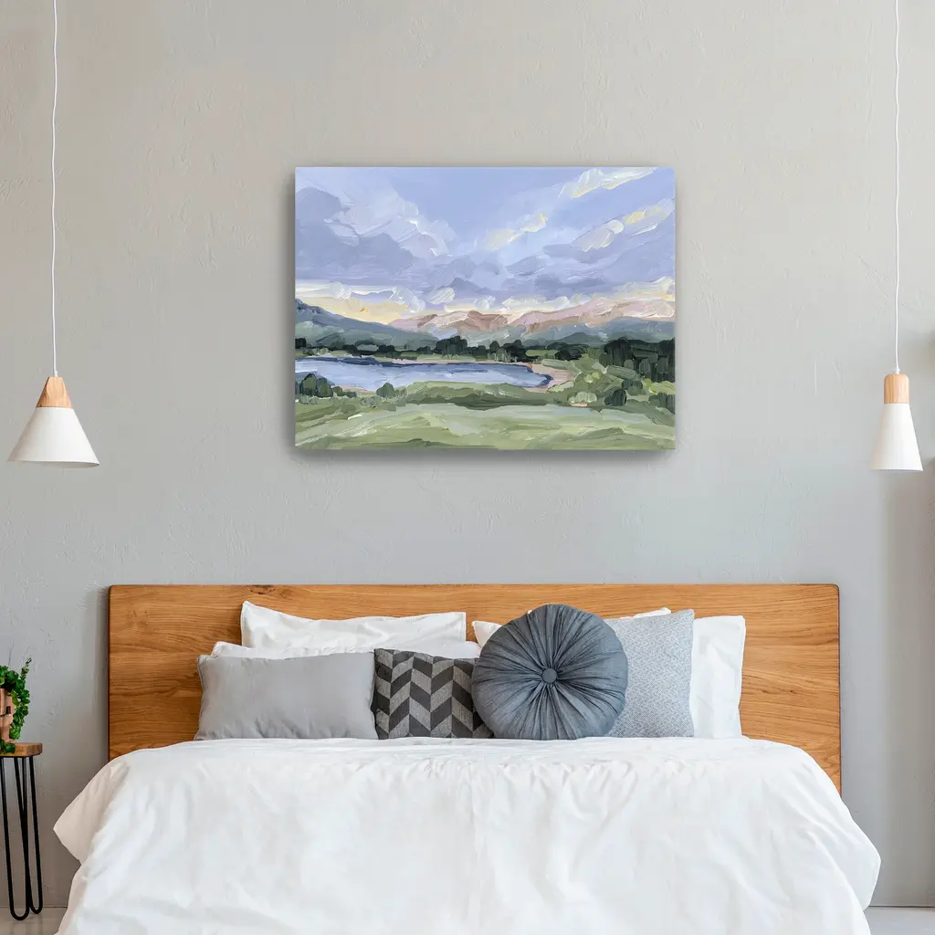 This elegant canvas art captures the essence of natural beauty with layered greens, muted browns, and soft sky tones in a tranquil landscape. Its organic flow and earthy palette bring warmth and balance to your home. Our Gallery Wrap Canvas Prints are proudly assembled with high quality materials in California, USA. Each piece is printed on a thick, archival grade canvas using Giclee technology. It is then hand-stretched by our experienced artisans over solid wood bars, which will not warp over time. The final product is a piece personally crafted for you to confidently display on your wall. Care and Assembly: Ensure that the location of your piece has little to no exposure to heat, sunlight, and moisture. Wipe clean, only if needed. Each piece includes hanging hardware to hang on your wall horizontally.