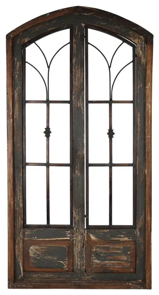Handmade from wood, it features a Gothic-inspired, arched frame with an intricate openwork scroll iron bar design in the center. Its rustic finish makes it a fine fit for modern farmhouses and country cottages alike. This gorgeous architectural window is offered in three sizes and five unique soft colors. It makes a statement in both looks and size. Wall mounting hardware is included with this product. NOTE: These windows are rustic, handmade and not machine made. They are not suppose to be perfect unions, etc that you would see with machine made items. There will be imperfections as is what they are suppose to be.