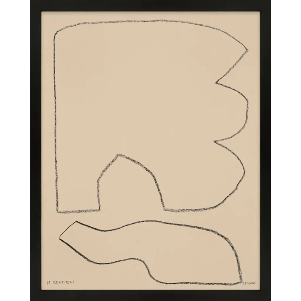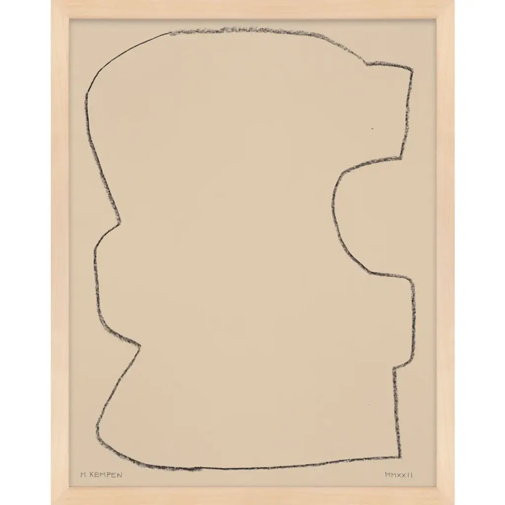 Sand 1. Artist Michael Kempen’s work finds a meditative quality in the balance of irregular shapes. This piece is an homage to the mid-century abstract paintings of Ellsworth Kelly + Robert Motherwell. It’s printed on paper in the USA, and arrives in a wooden frame with hanging hardware.