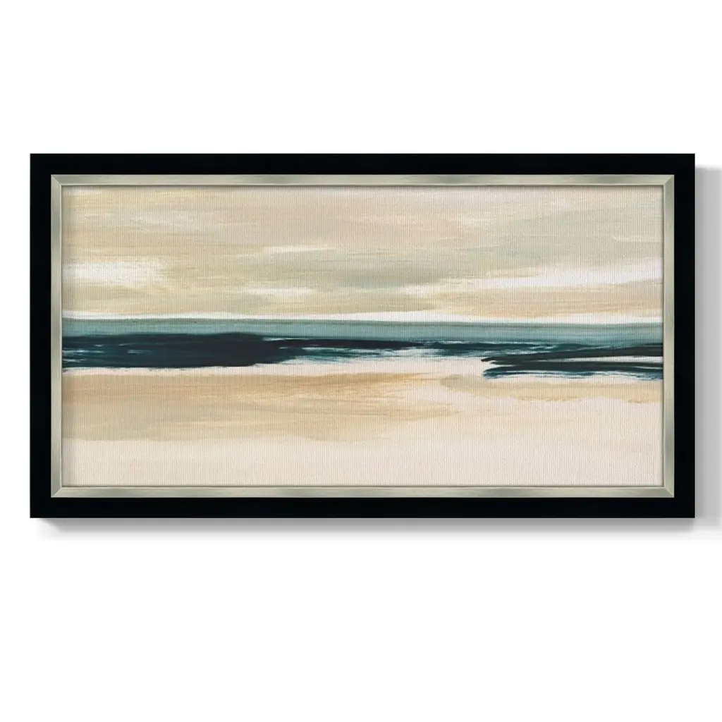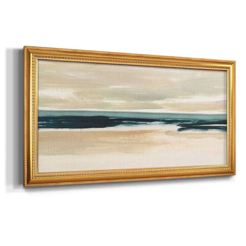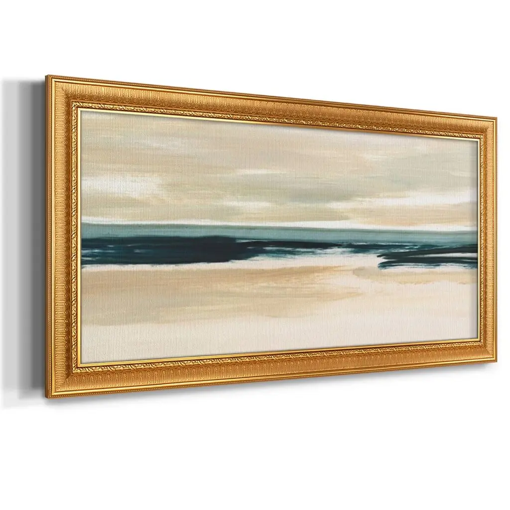 Sand & Sea I Premium Framed Canvas- Ready to Hang A Premium Framed Canvas created to last. Framed in distressed wood and available in an array of sizes and colors Featuring a beveled a solid wood stretcher bar, each piece comes ready to hand 3 SIZES AVAILABLE 21''X37'' - Overall Size 25''X45'' - Overall Size 29''x53'' - Overall Size Each piece is made to order. Each piece comes with hanging hardware. Made in the USA Ready to Hang Giclee Paper Print Acrylic Glass Beveled Matt Board
