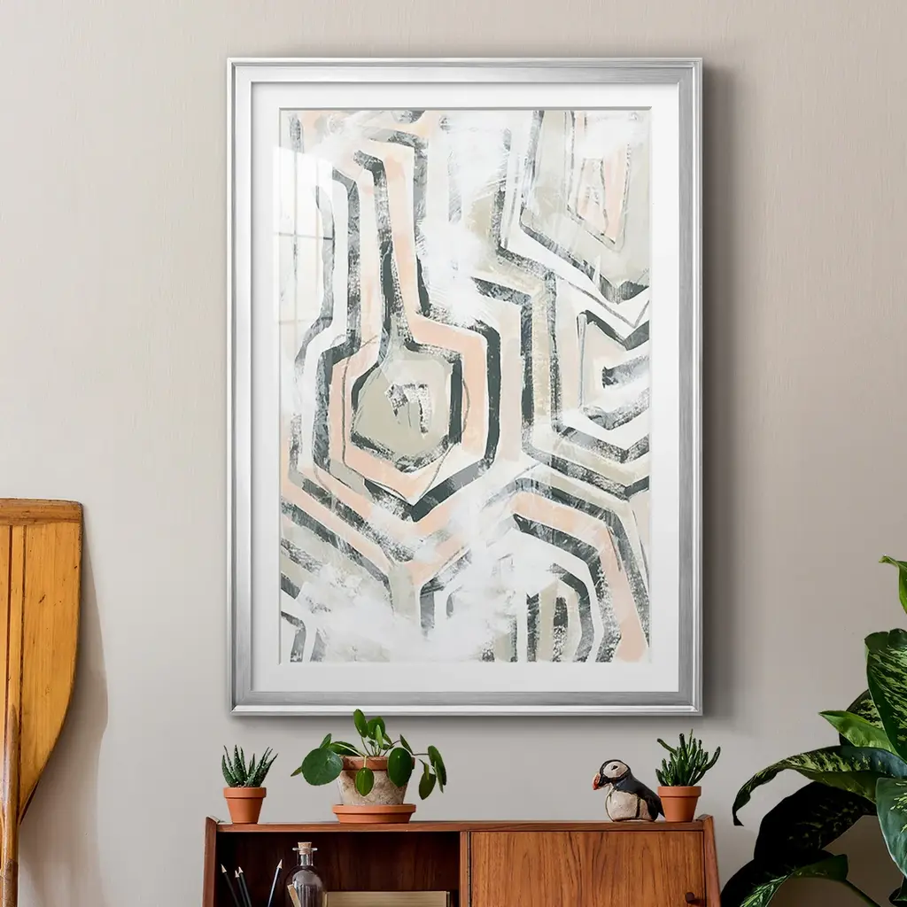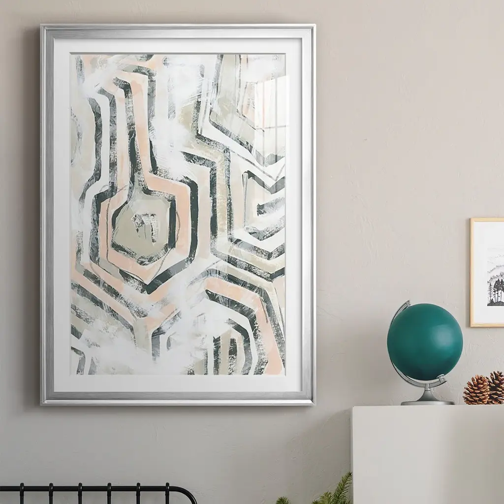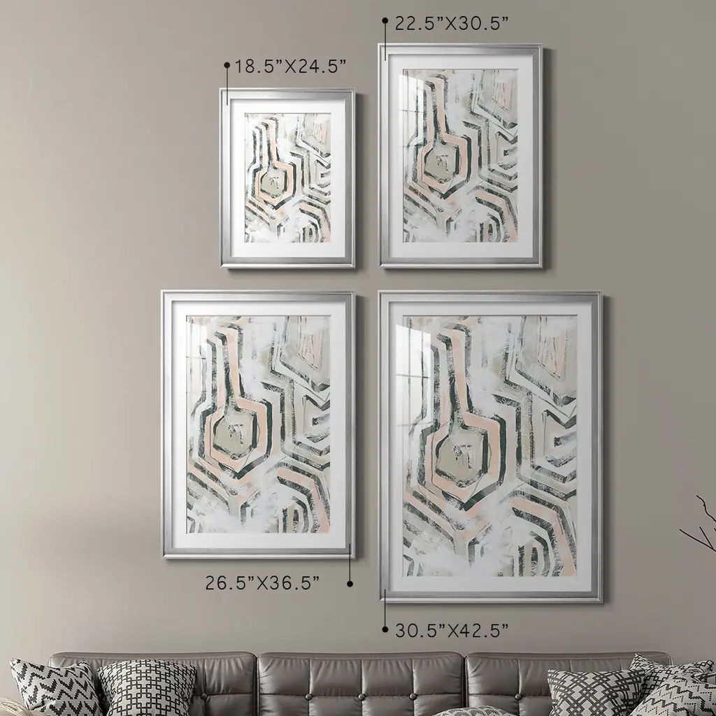 Sand Glyphs I Premium Framed Print - Ready to Hang A Premium Framed Print created to last. Framed in distressed wood and available in an array of sizes and colors Featuring a beveled a solid wood stretcher bar, each piece comes ready to hand 4 SIZES AVAILABLE 30.5''X42.5'' - Overall Size 26.5'X36.5'' - Overall Size 22.5''x30.5'' - Overall Size 18.5''x24.5'' - Overall Size Each piece is made to order. Each piece comes with hanging hardware. Made in the USA Ready to Hang Giclee Paper Print Acrylic Glass Beveled Matt Board