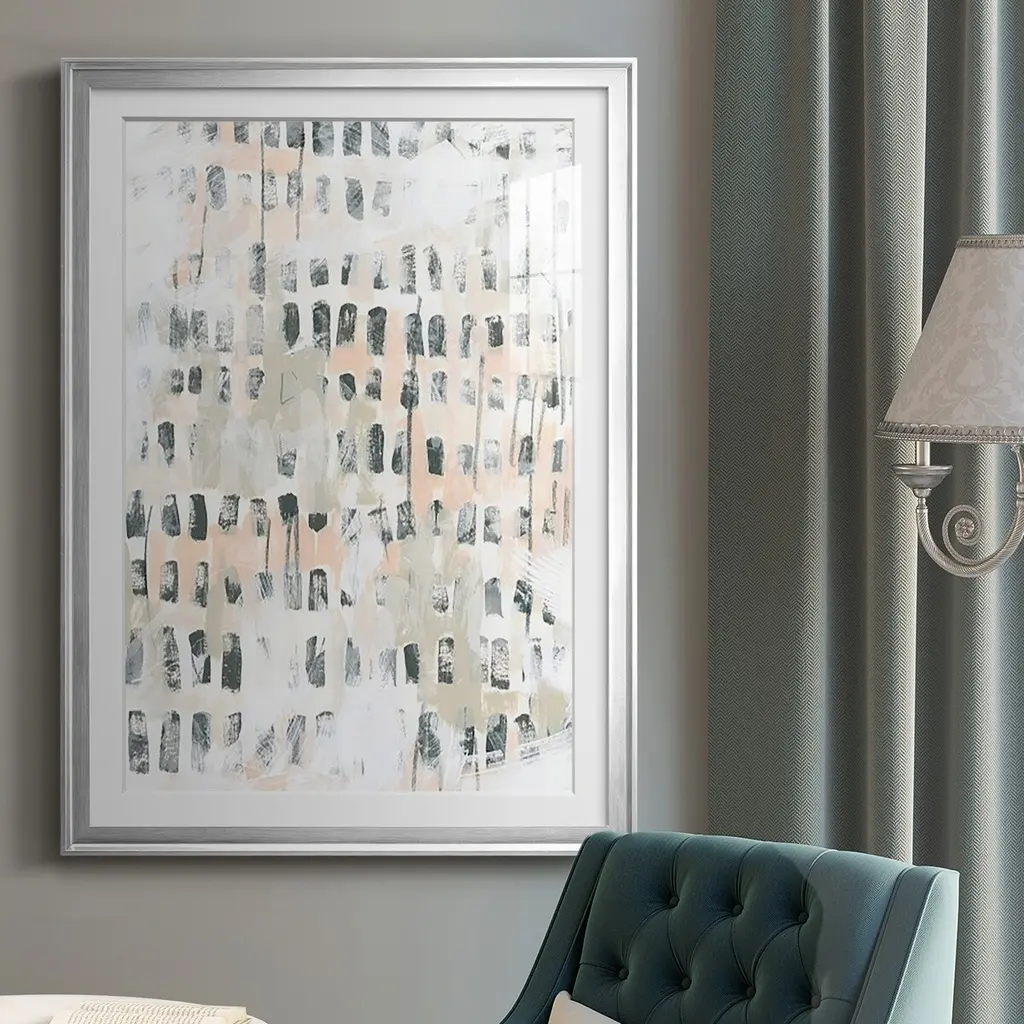 Sand Glyphs III Premium Framed Print - Ready to Hang A Premium Framed Print created to last. Framed in distressed wood and available in an array of sizes and colors Featuring a beveled a solid wood stretcher bar, each piece comes ready to hand 4 SIZES AVAILABLE 30.5''X42.5'' - Overall Size 26.5'X36.5'' - Overall Size 22.5''x30.5'' - Overall Size 18.5''x24.5'' - Overall Size Each piece is made to order. Each piece comes with hanging hardware. Made in the USA Ready to Hang Giclee Paper Print Acrylic Glass Beveled Matt Board