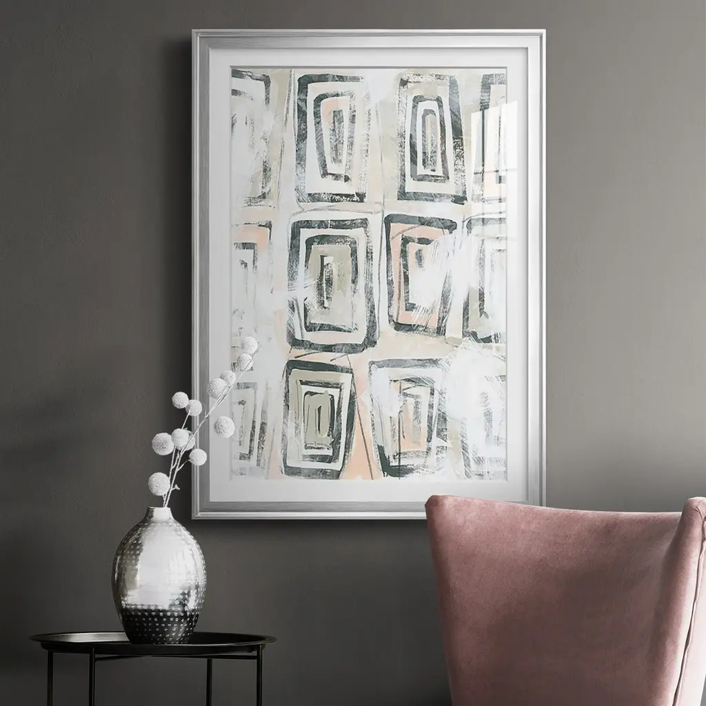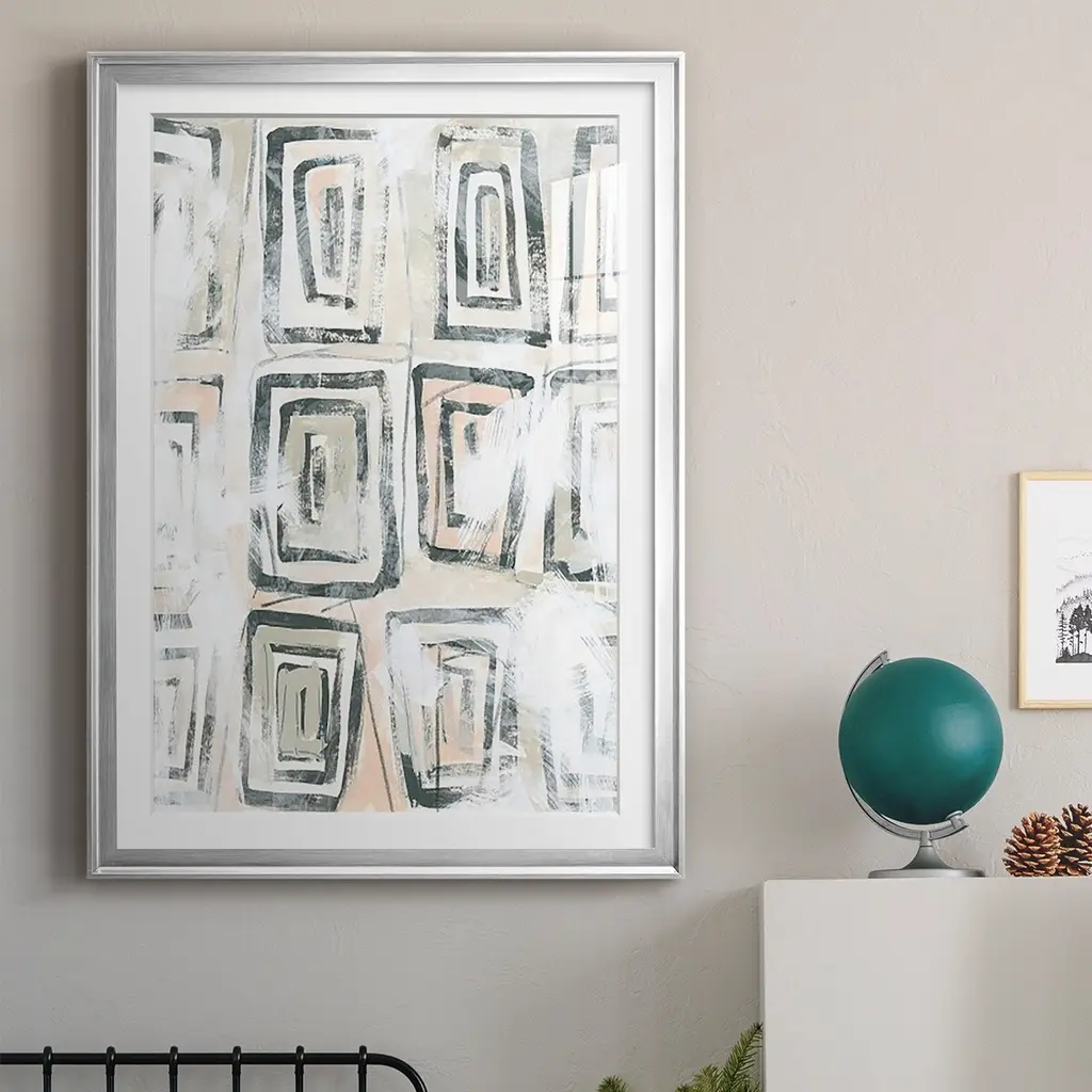 Sand Glyphs IV Premium Framed Print - Ready to Hang A Premium Framed Print created to last. Framed in distressed wood and available in an array of sizes and colors Featuring a beveled a solid wood stretcher bar, each piece comes ready to hand 4 SIZES AVAILABLE 30.5''X42.5'' - Overall Size 26.5'X36.5'' - Overall Size 22.5''x30.5'' - Overall Size 18.5''x24.5'' - Overall Size Each piece is made to order. Each piece comes with hanging hardware. Made in the USA Ready to Hang Giclee Paper Print Acrylic Glass Beveled Matt Board
