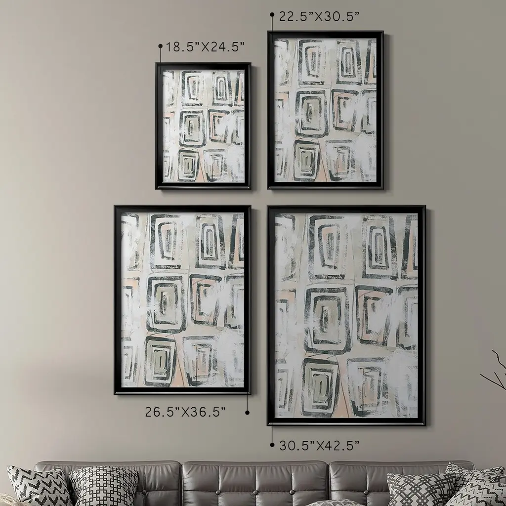 Sand Glyphs IV Premium Framed Print - Ready to Hang A Premium Framed Print created to last. Framed in distressed wood and available in an array of sizes and colors Featuring a beveled a solid wood stretcher bar, each piece comes ready to hand 4 SIZES AVAILABLE 30.5''X42.5'' - Overall Size 26.5'X36.5'' - Overall Size 22.5''x30.5'' - Overall Size 18.5''x24.5'' - Overall Size Each piece is made to order. Each piece comes with hanging hardware. Made in the USA Ready to Hang