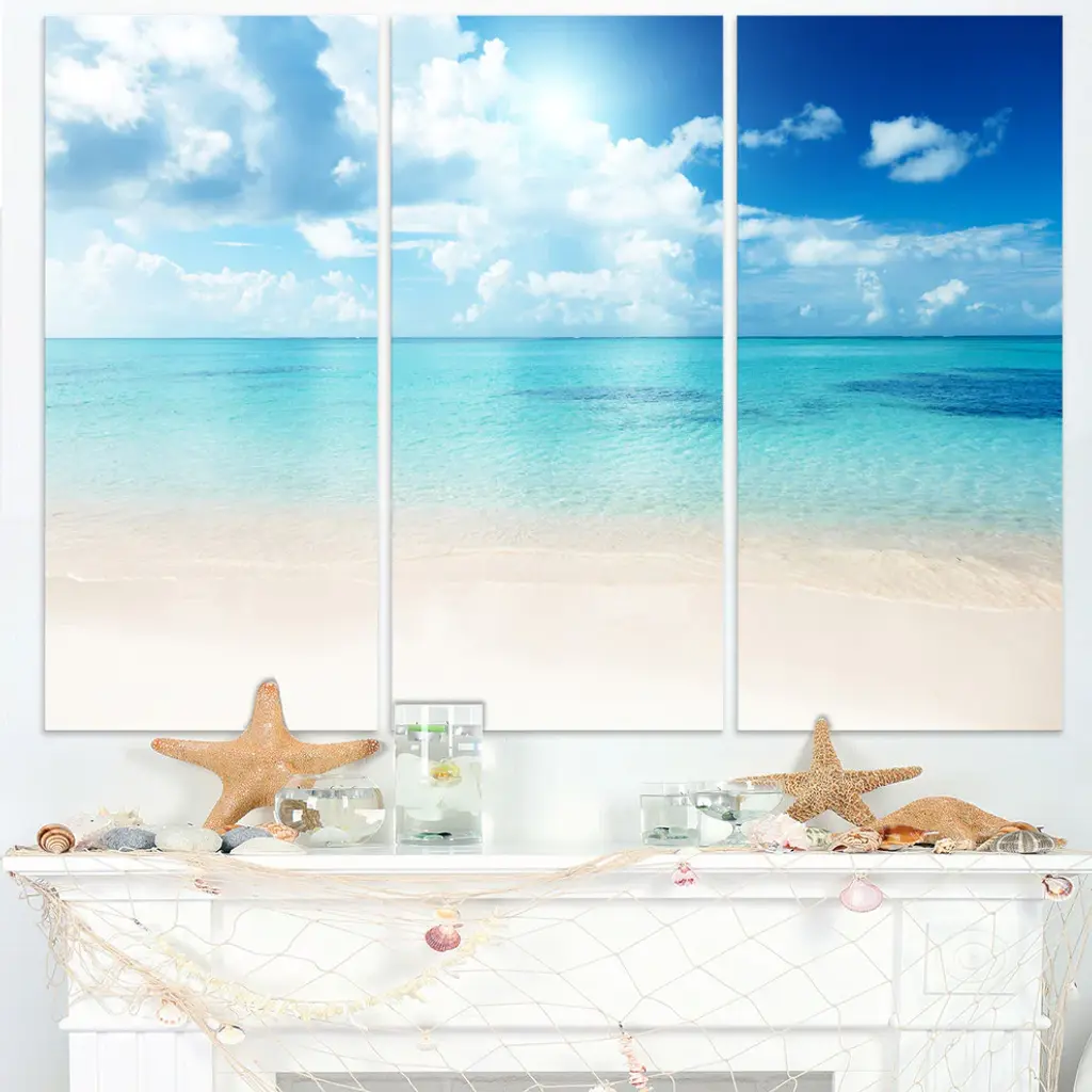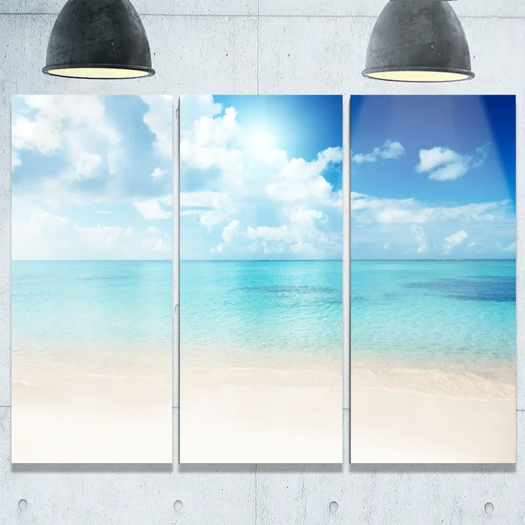 "Sand Of Beach In Blue Caribbean Sea" Metal Wall Art, 3 Panels, 36"x28"