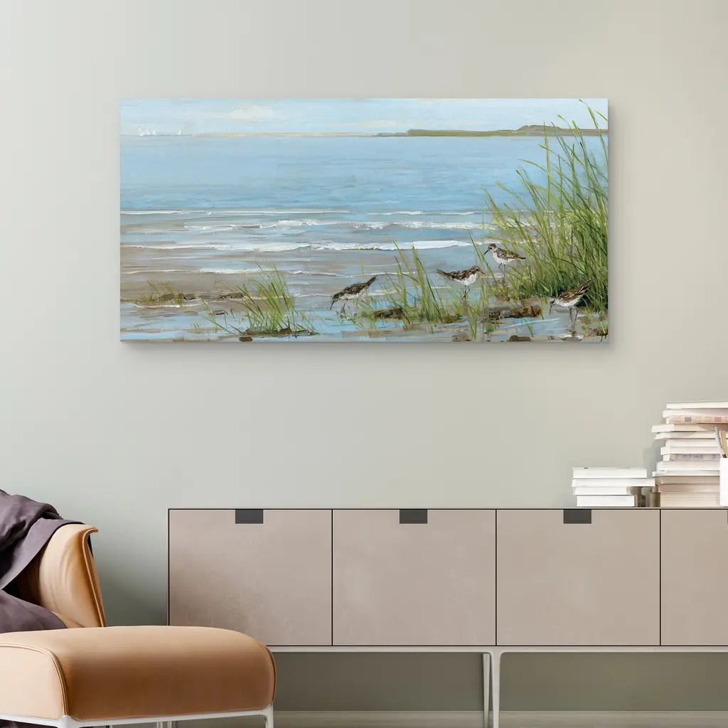 Sandpiper Beach by Sally Swatland Canvas Art Print is produced with printing that covers the entirety of the canvas for a sleek and stylish museum-quality look. Our framed prints are made by expert craftsmen who strive to make each canvas the masterpiece