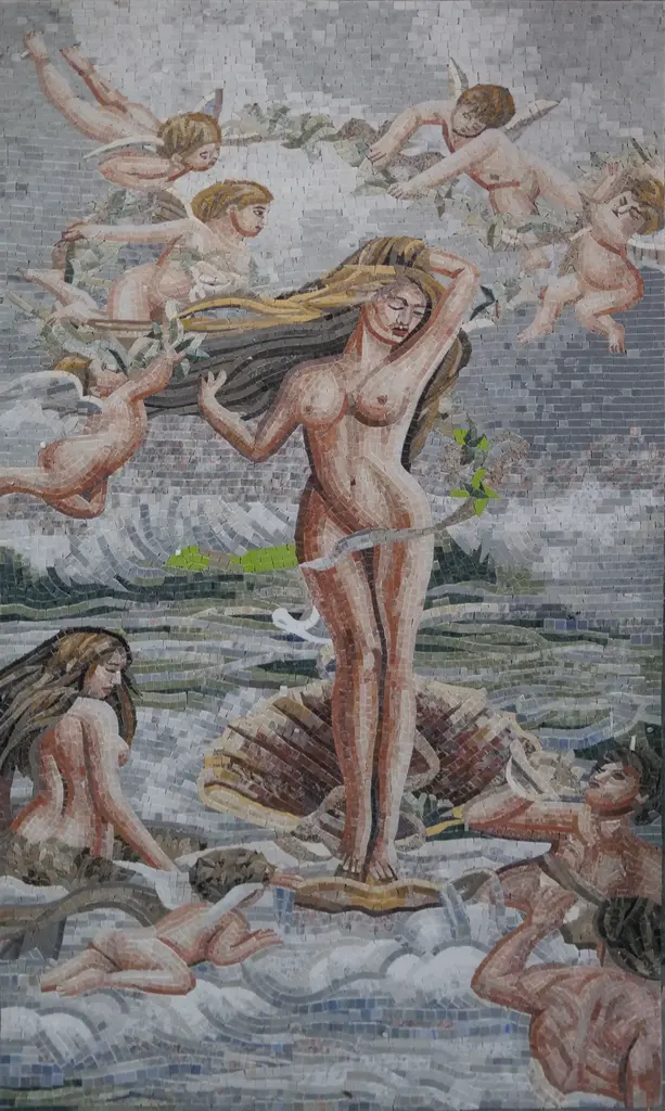 Meet the timeless beauty of Sandro Botticelli's Birth of Venus with our exquisite mosaic art reproduction. Immerse yourself in the graceful elegance and ethereal charm of this captivating masterpiece. Handcrafted with meticulous attention to detail, our mosaic artwork effortlessly captures the essence of Botticelli's masterpiece, bringing an aura of sophistication and artistry to any space. Elevate your surroundings and indulge in the allure of classical artistry with our Sandro Botticelli Birth of Venus mosaic art reproduction.