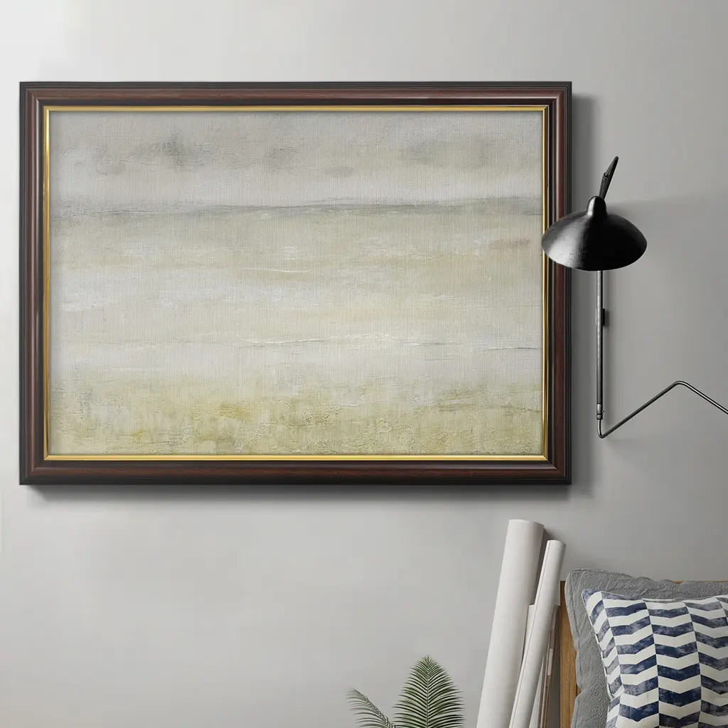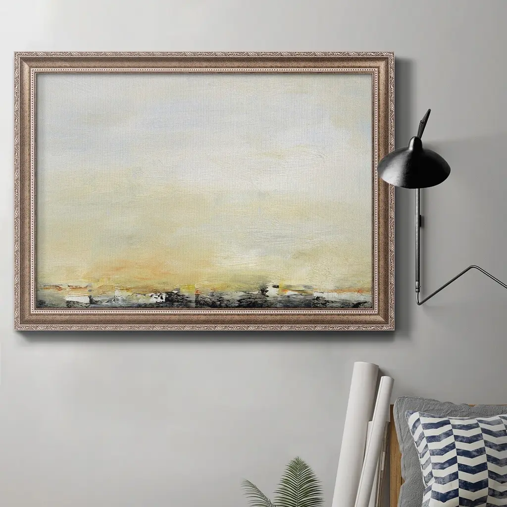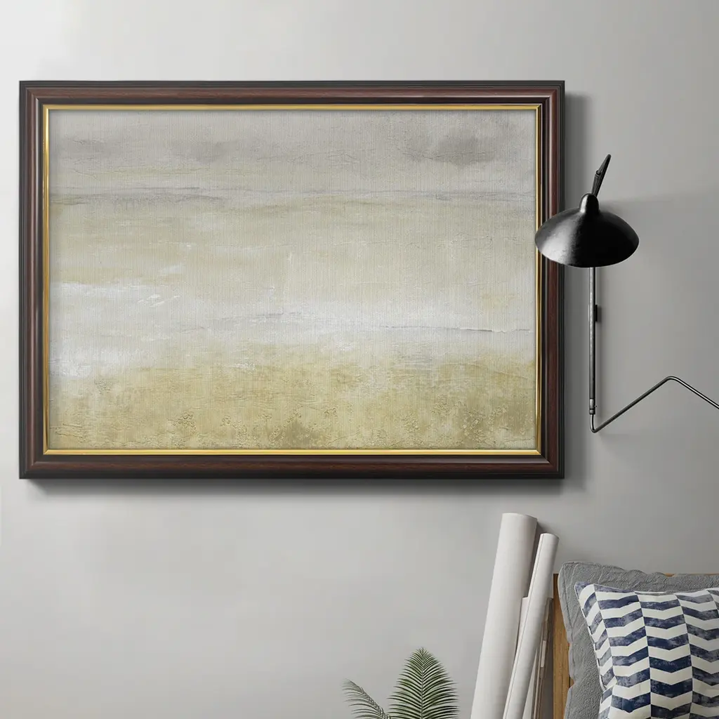 Giclee on canvas is hand finished with gold leaf. Hand stretched and mounted in an antique gold wood floater frame.