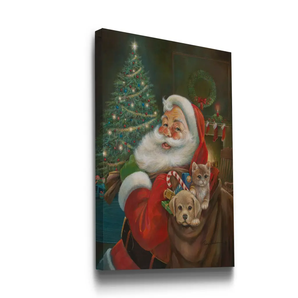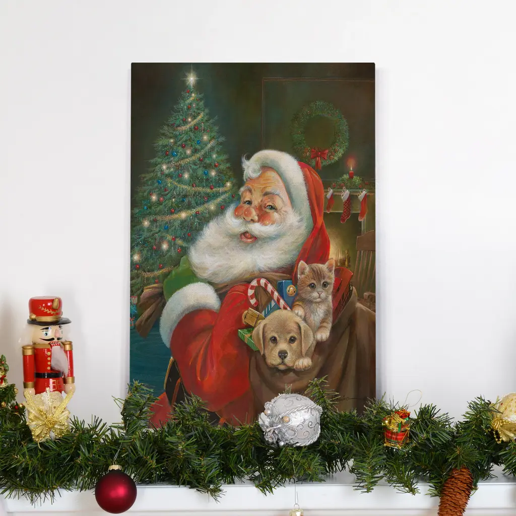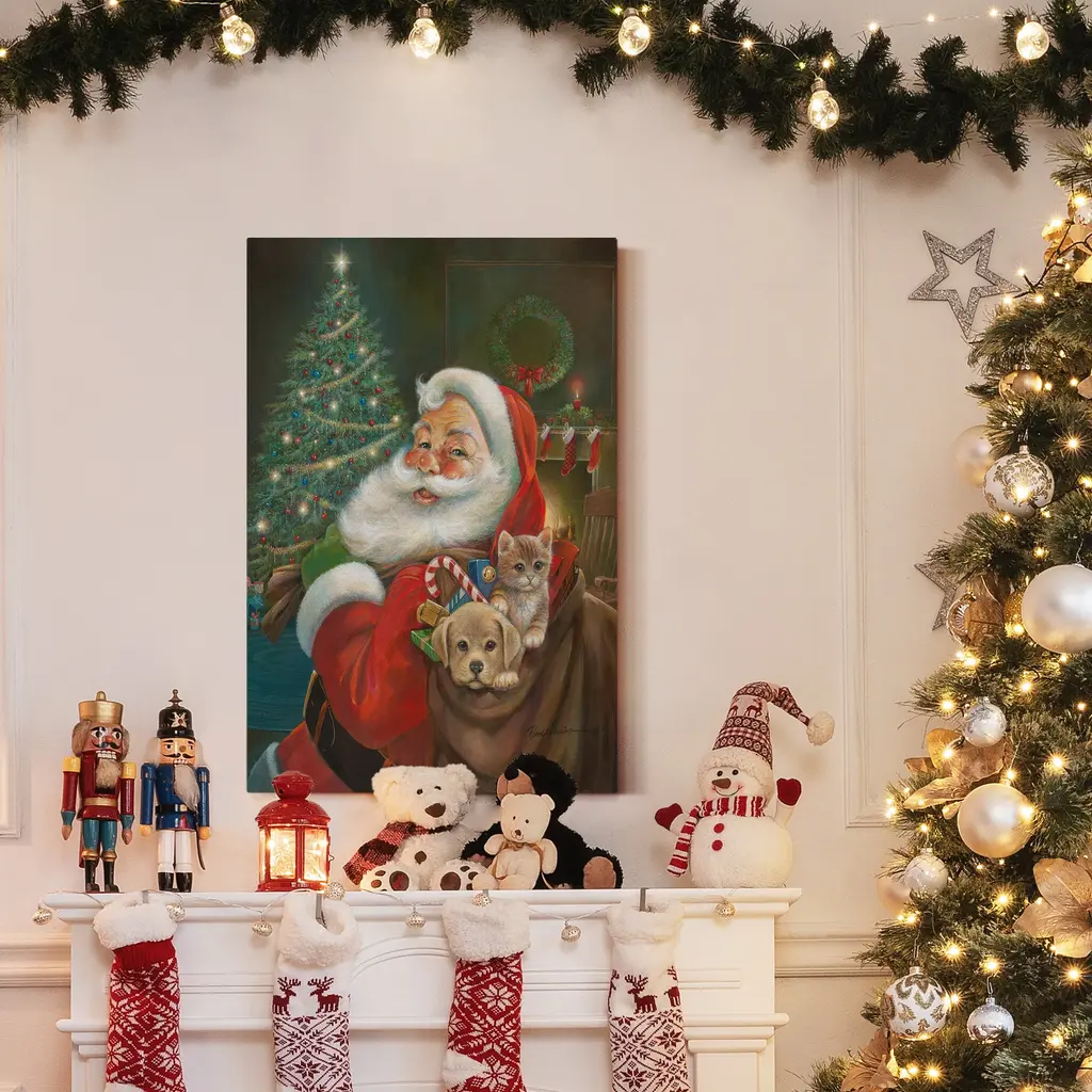Santa Claus-Premium Gallery Wrapped Canvas - Ready to Hang A premium hand stretched gallery wrapped canvas print created to last. Featuring a beveled a solid wood stretcher bar, each piece comes ready to hand 5 SIZES AVAILABLE 8''X12'' - Overall Size 16''x20'' - Overall Size 18''x27'' - Overall Size 24''x36'' - Overall Size 32''x48'' - Overall Size Each piece is made to order. Built to Last Each piece comes ready to hang Solid wood stretcher Fade and Water resistant Made domestically