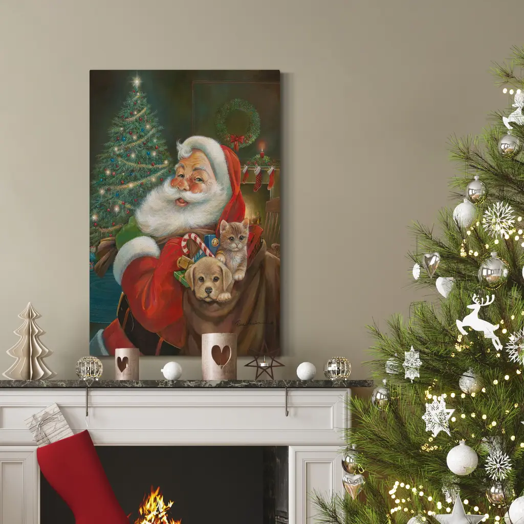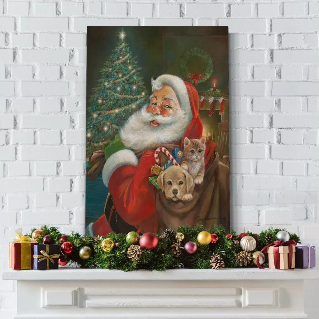 Santa Claus-Premium Gallery Wrapped Canvas - Ready to Hang A premium hand stretched gallery wrapped canvas print created to last. Featuring a beveled a solid wood stretcher bar, each piece comes ready to hand 5 SIZES AVAILABLE 8''X12'' - Overall Size 16''x20'' - Overall Size 18''x27'' - Overall Size 24''x36'' - Overall Size 32''x48'' - Overall Size Each piece is made to order. Built to Last Each piece comes ready to hang Solid wood stretcher Fade and Water resistant Made domestically