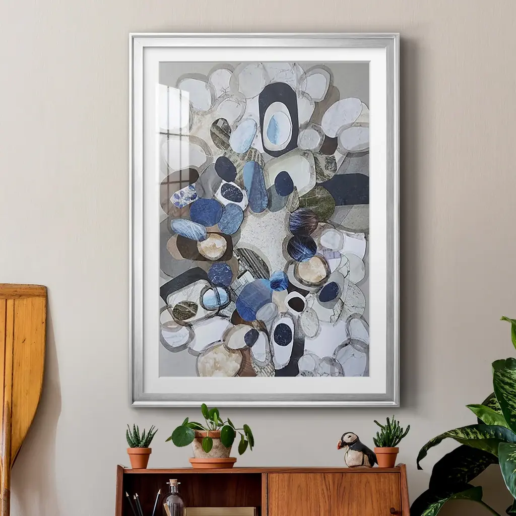 Santa Cruz Beach Stones Premium Framed Print - Ready to Hang A Premium Framed Print created to last. Framed in distressed wood and available in an array of sizes and colors Featuring a beveled a solid wood stretcher bar, each piece comes ready to hand 4 SIZES AVAILABLE 30.5''X42.5'' - Overall Size 26.5'X36.5'' - Overall Size 22.5''x30.5'' - Overall Size 18.5''x24.5'' - Overall Size Each piece is made to order. Each piece comes with hanging hardware. Made in the USA Ready to Hang Giclee Paper Print Acrylic Glass Beveled Matt Board