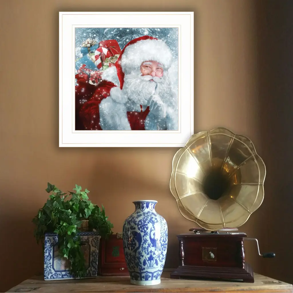 This santa with presents 1 white framed print wall art is a great way to celebrate and decorate for the holidays. This print is a visual artistic expression that allows you to decorate your space in style. Reproduced for you on paper, this hanging decorative accent will be a trendy and fashionable way to dress your walls. Hang on your wall to add some up to date fashion and decoration. Utilize this opportunity to create a focal point in the room with this fabulous wall decor option. 15" H x 15" W x 1" D