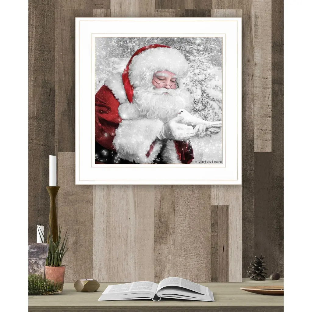 This santas little friends 3 white framed print wall art is a great way to celebrate and decorate for the holidays. This print is a visual artistic expression that allows you to decorate your space in style. Reproduced for you on wood, this hanging decorative accent will be a trendy and fashionable way to dress your walls in a rustic and modern farmhouse vibe. Hang on your wall to add some up to date fashion and decoration. Instantly liven up your space with this art that brings color and dimension to your walls. 15" H x 15" W x 1" D