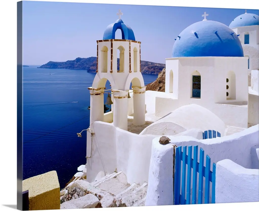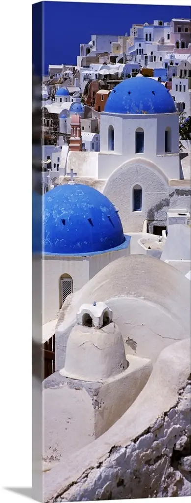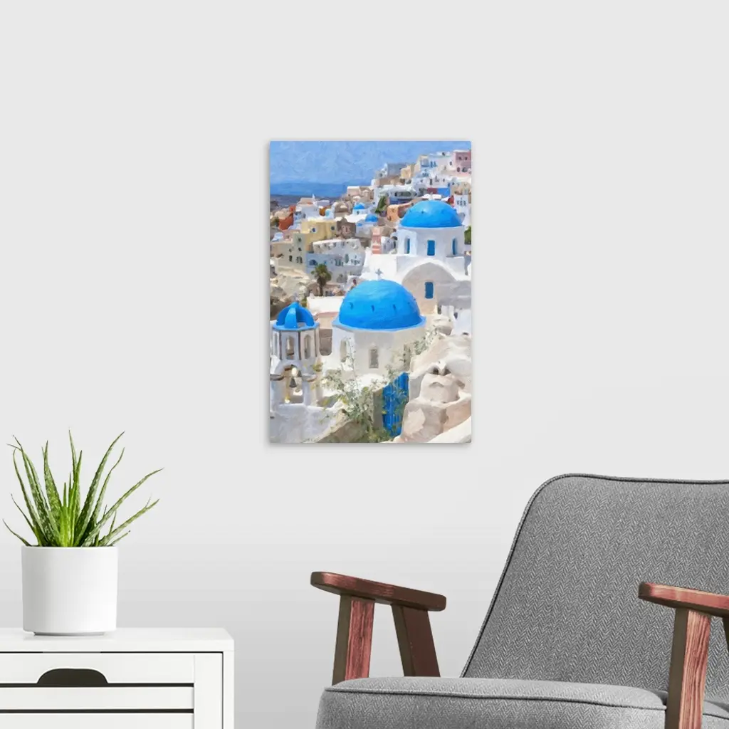 Originally a digital oil painting of a few of the famous blue domed churches from Oia on the Greek isle of Santorini.