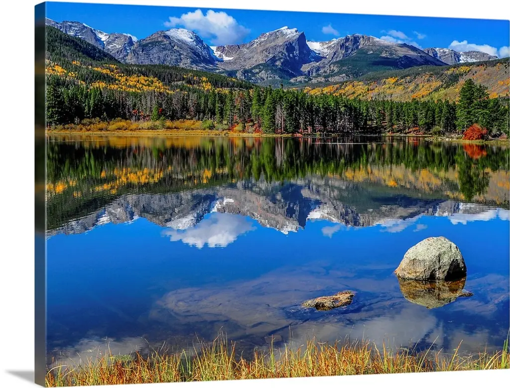 Sapphire Mountain Lake View, Landscape Canvas Art Print, 60"x28"