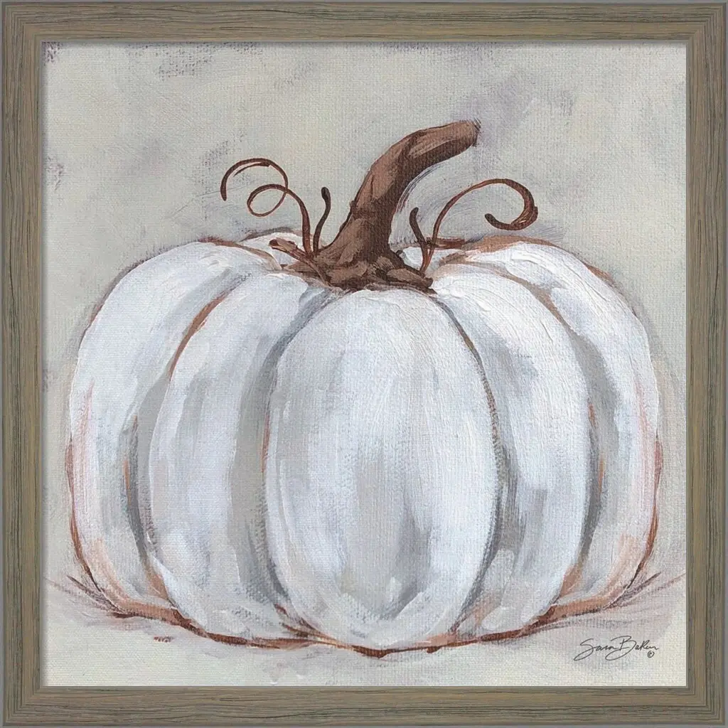 Pumpkin Close-Up II by Sara Baker is a high quality piece of framed artwork. The finished size of this piece is 13" X 13". It has a Distressed Grey Knotty Wood frame and is finished with high quality Acrylic Plexiglass. 100% Satisfaction Guaranteed.